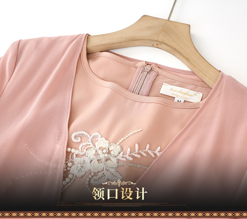 红色刺绣衬衫女设计感小众2022春季立领衬衣七分袖上衣 KIS1002