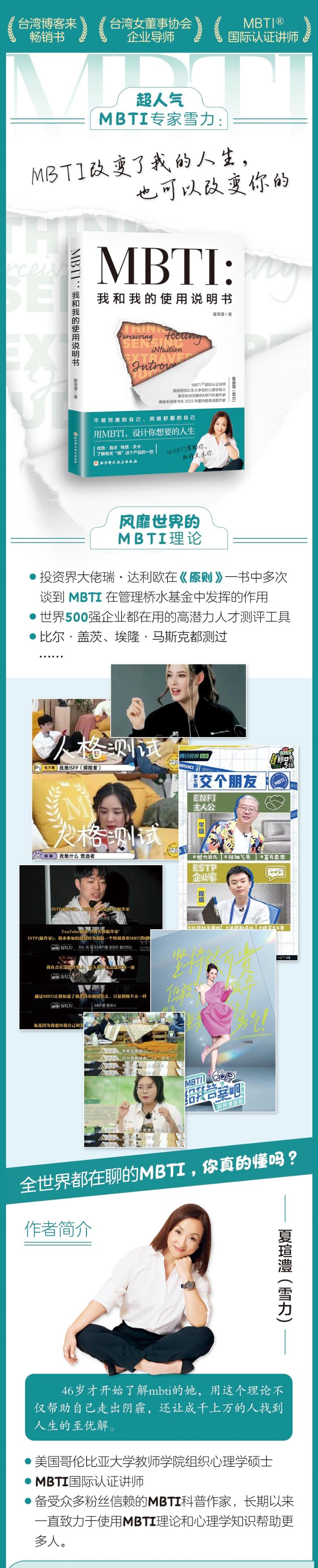 人人都知道MBTI,但只有1%的人用对了MBTI!人生没有捷径可走,但找到自己的天赋所在有捷径! MBTI,究竟应该怎么用?超人气MBTI专家雪力教你MBTI的正确使用方法! ☆每次做都不一样,MBTI准吗?→需要有专业人士带领 ☆人怎么可能这么简单?→不适合在经历重大事故后评量,也请在16岁以后再测 ☆凭什么用四个字母判定我的能力? →是的,别误解,MBTI评估的是你的认知功能,而非能力。 雪力说:让MBTI帮助你,识别天赋,了解盲点,不做“完美的自己”,而做“完整而舒服的自己”。
