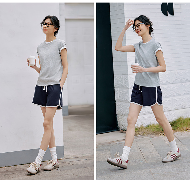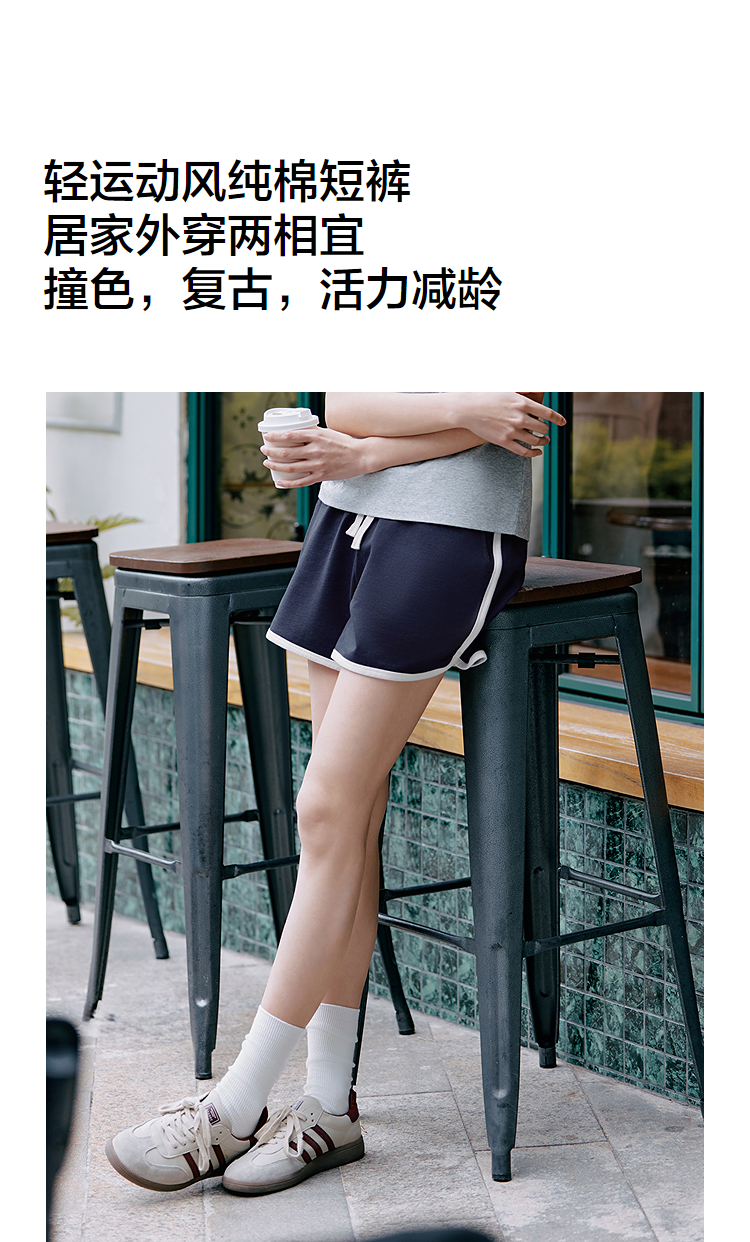 森马家居服女轻运动风纯棉短裤夏季宽松睡裤外穿裤子窄腰复古撞色