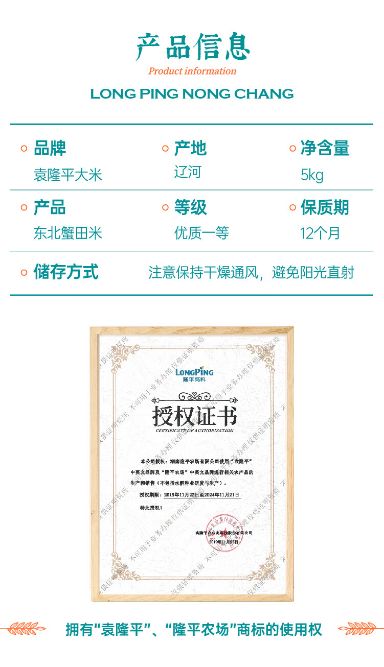 袁隆平东北蟹田米10斤/袋东北大米