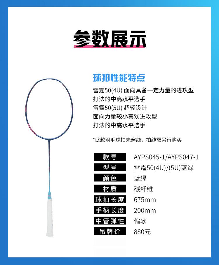 李宁Lining雷霆50羽毛球拍全碳素纤维进攻型球拍耐用型比赛训练单拍