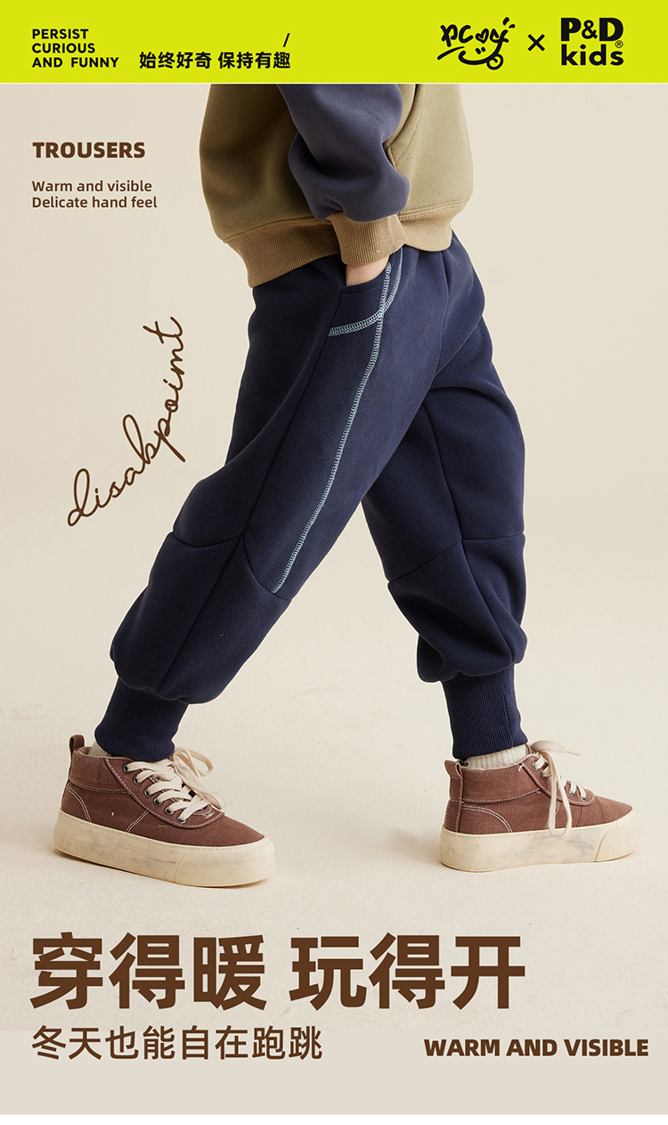 【温暖厚实】亲子款撞色明线加绒卫裤PQK2337