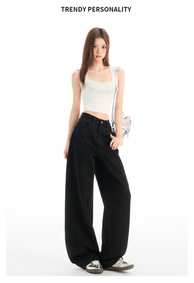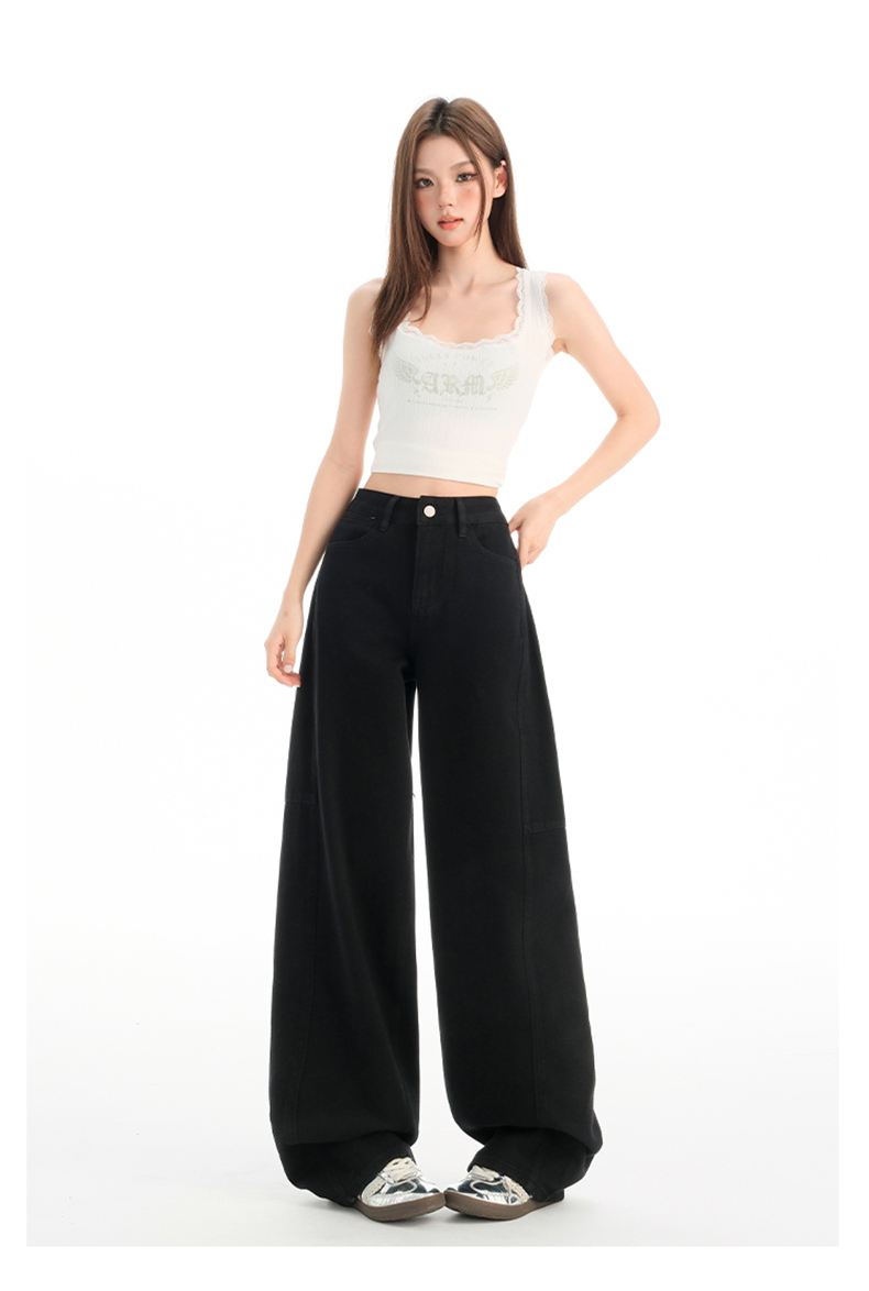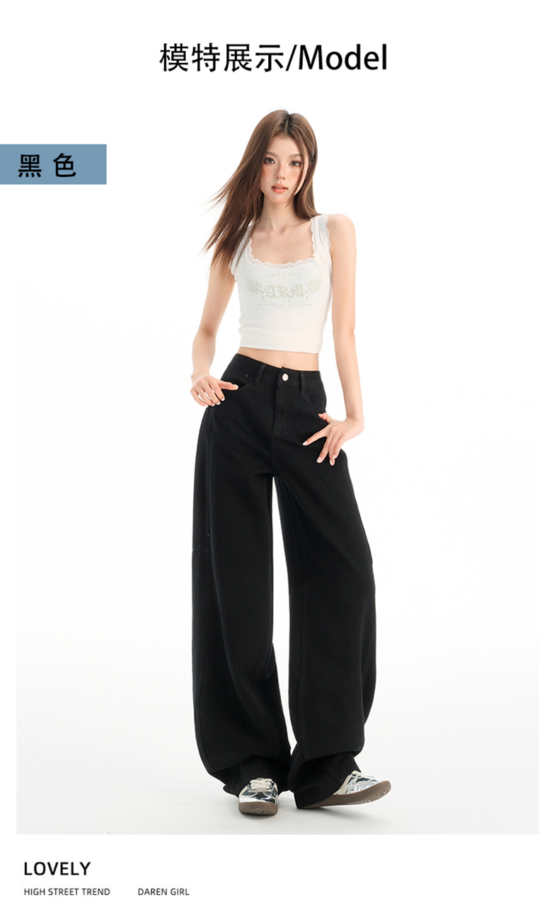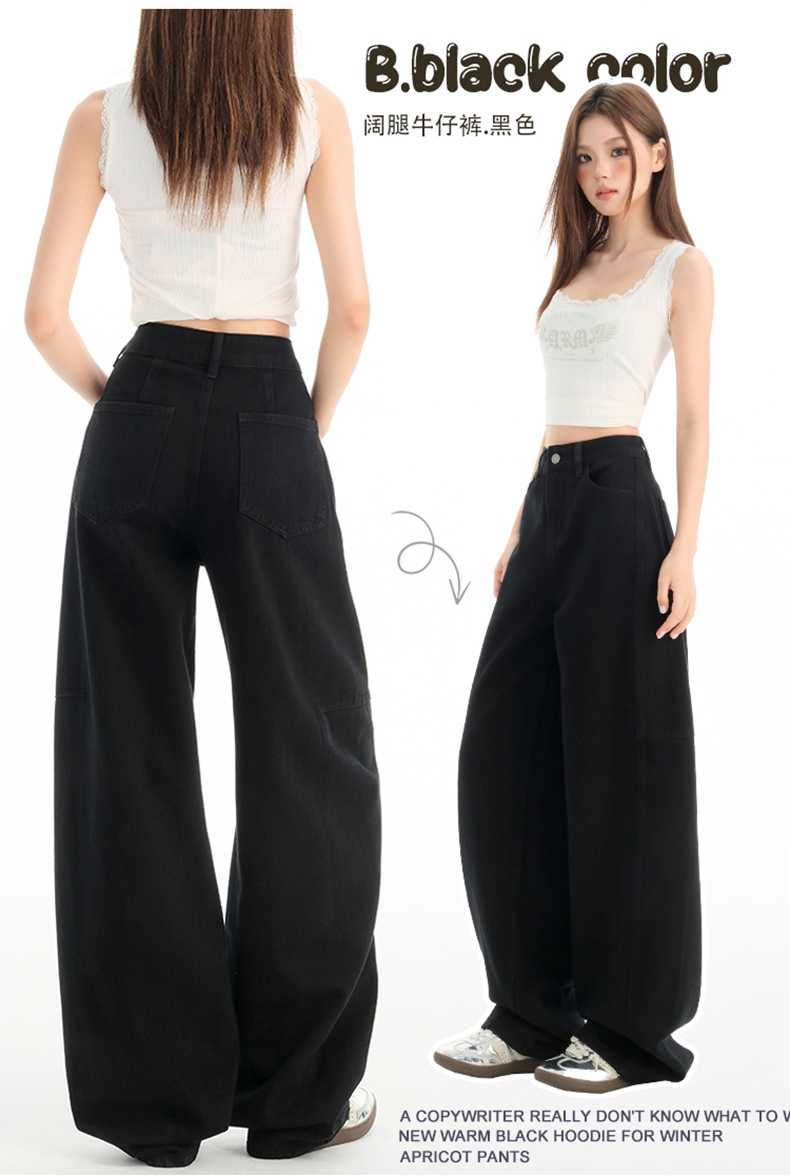 【加绒加厚】罗蒙牛仔裤秋冬款女士纯棉阔腿裤子百搭时尚休闲裤子