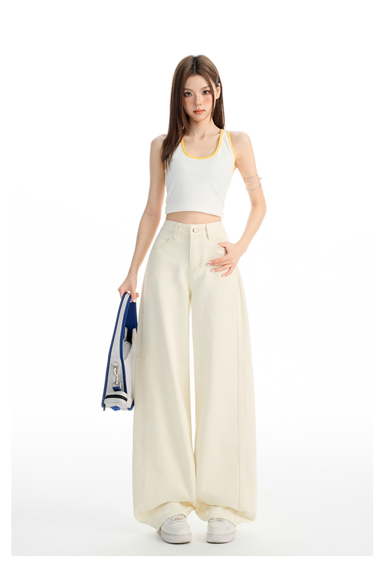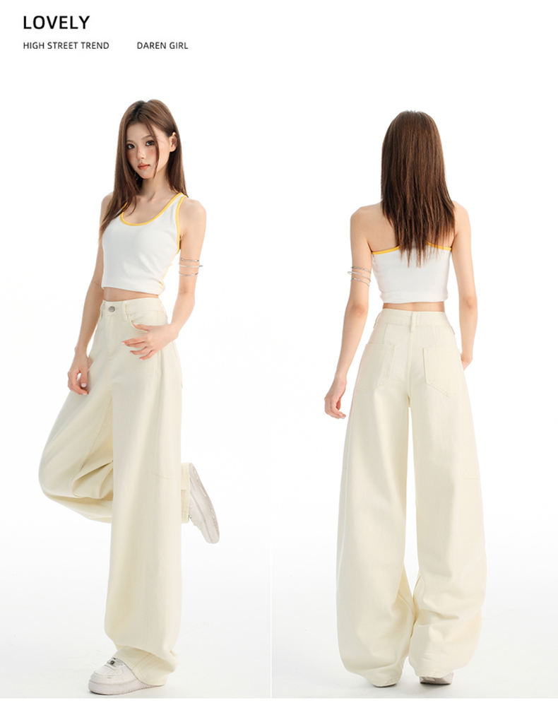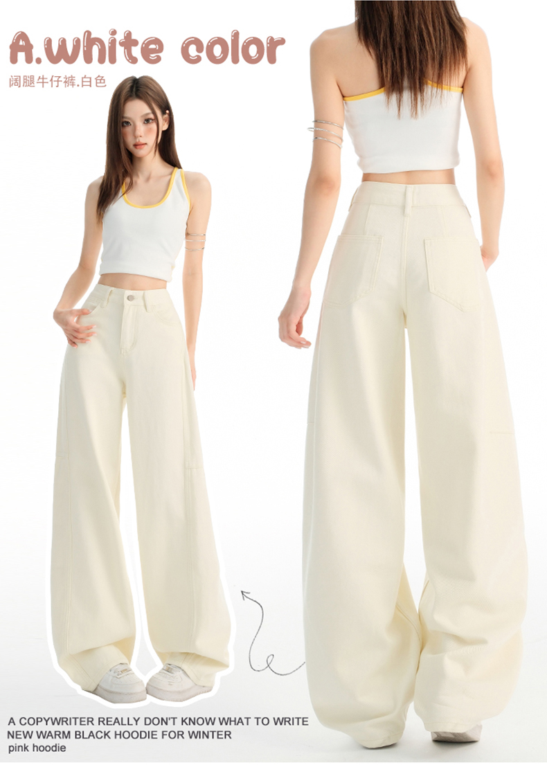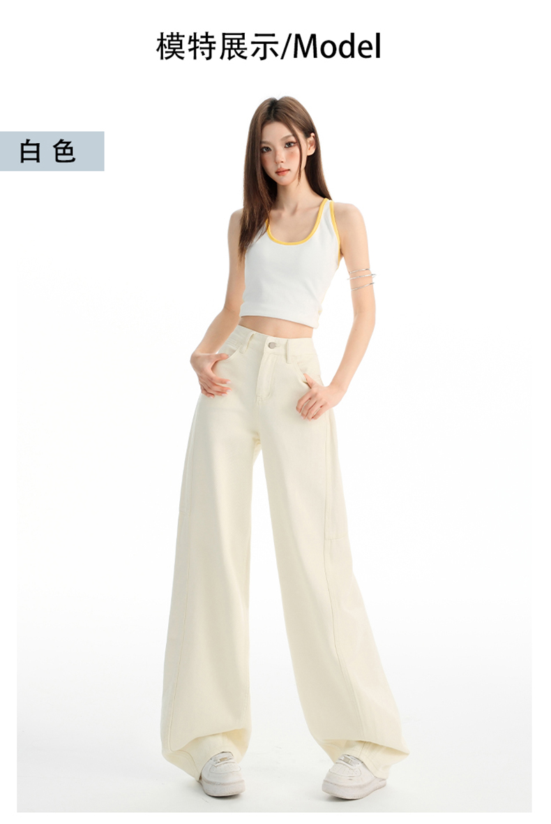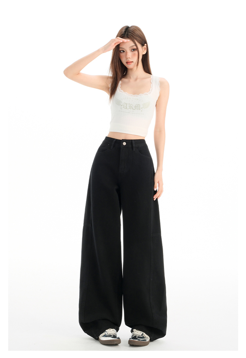 【加绒加厚】罗蒙牛仔裤秋冬款女士纯棉阔腿裤子百搭时尚休闲裤子