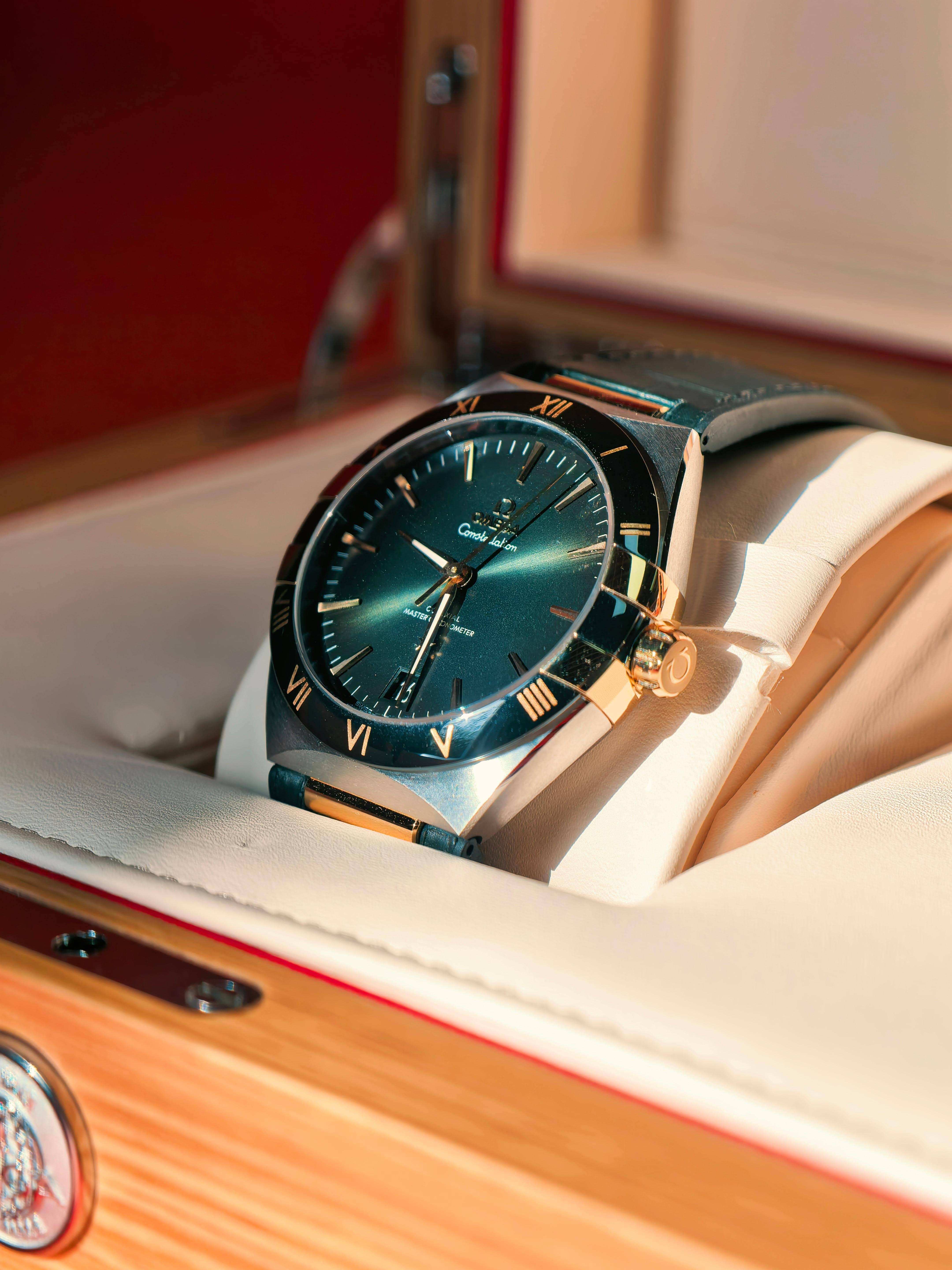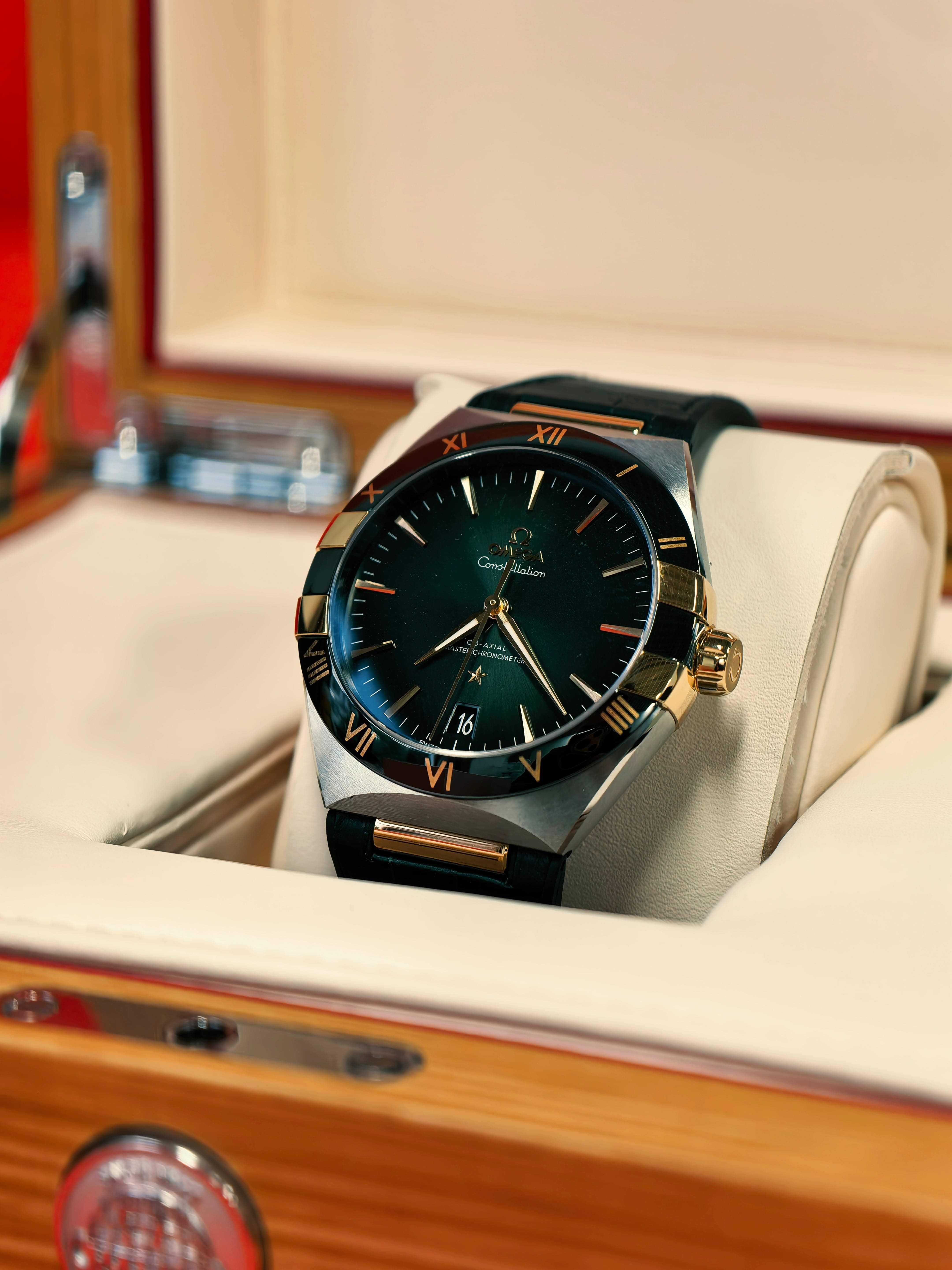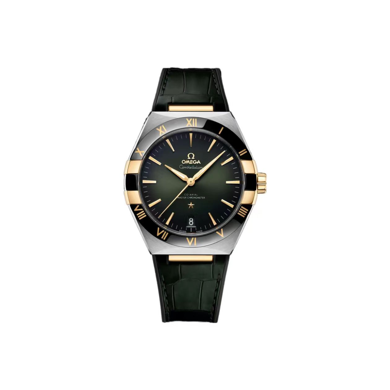 OMEGA欧米茄 星座系列星座腕表 自动机械机芯 50米防水 男表 瑞表 41mm 绿色表盘 精钢黄金表壳 皮革表带