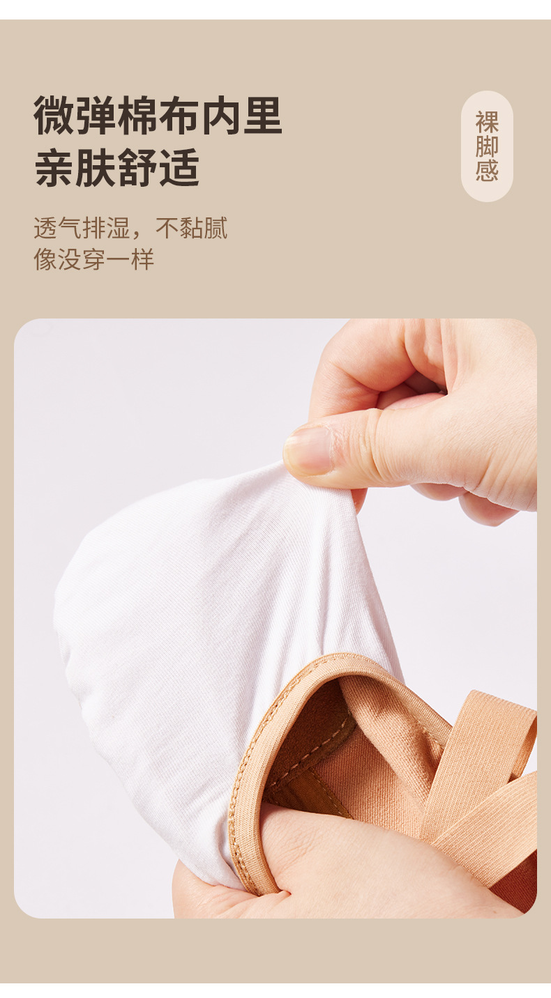 区别在于:拼接弹力纱更轻盈、更薄,这款裸感谢包裹性更好,苹果底、加宽松紧带、里外双层布,光脚穿很舒服。四季款。