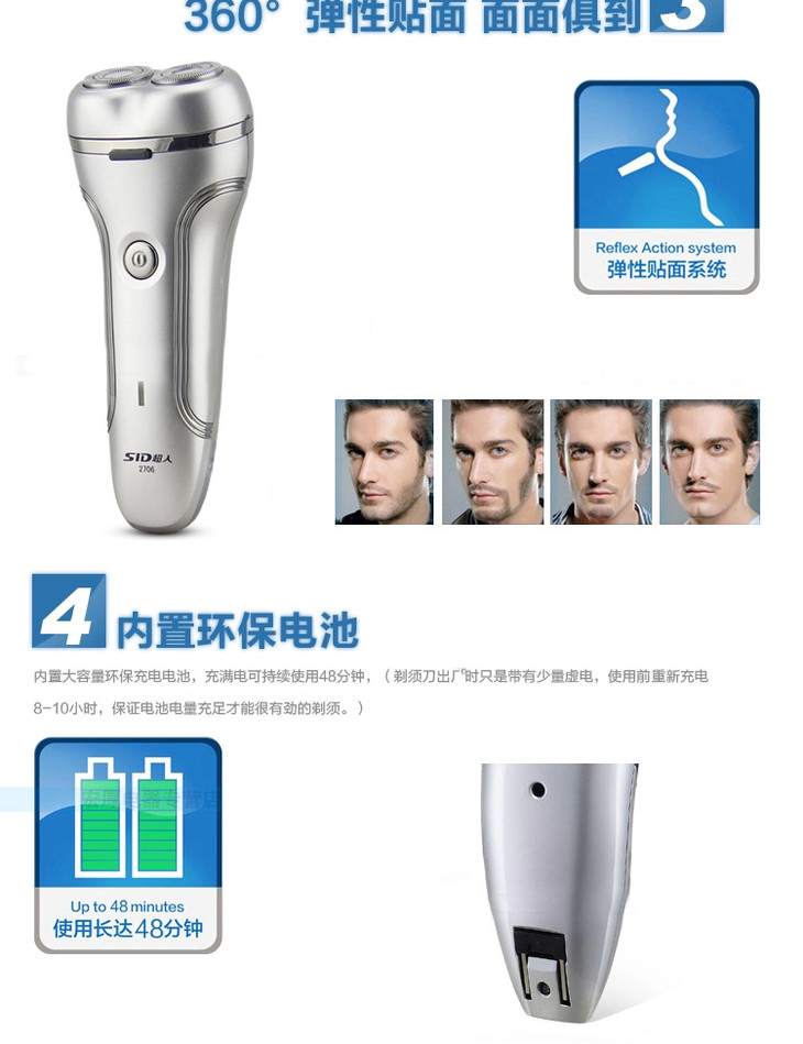 超人(SID) 电动剃须刀充电式SA2706男士刮胡刀刀头水洗