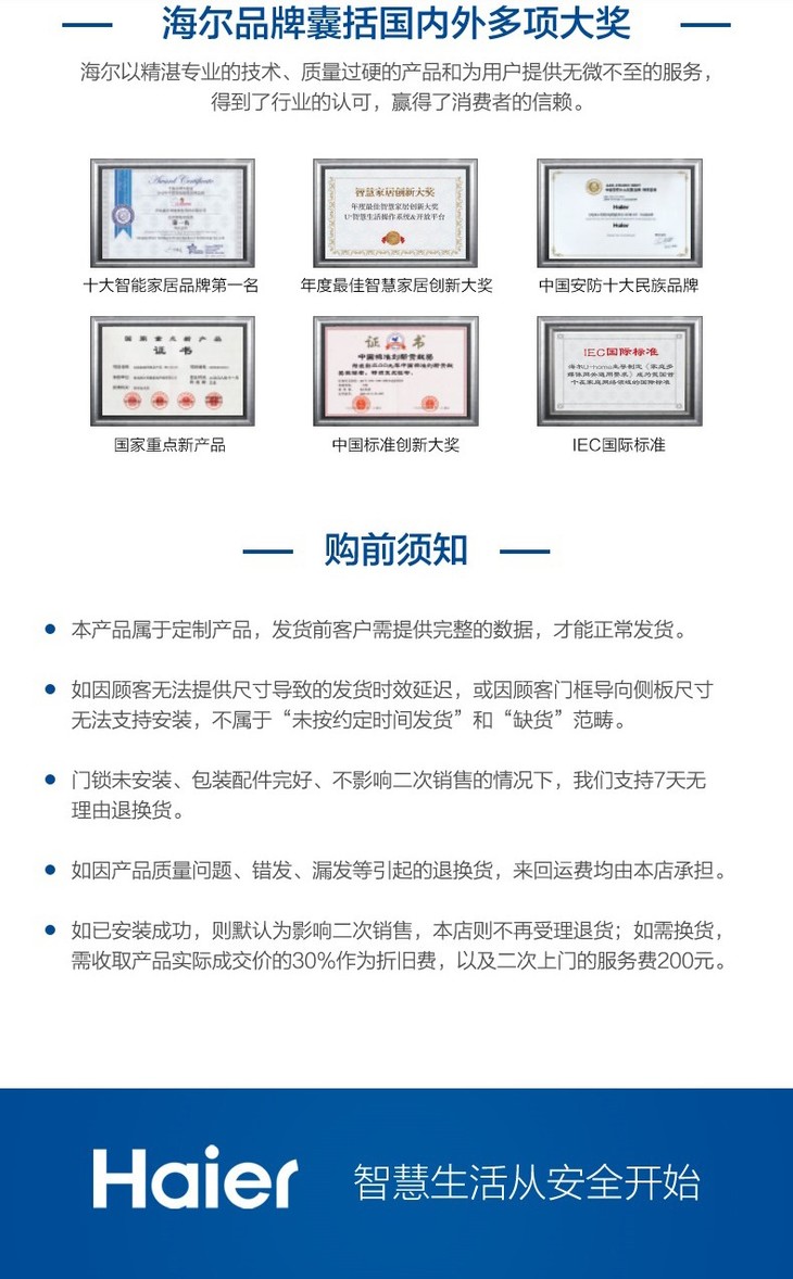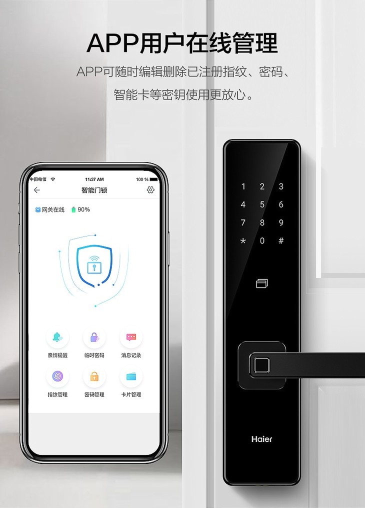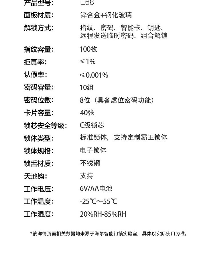 海尔(Haier)指纹锁 HFH-68E-R曜石黑