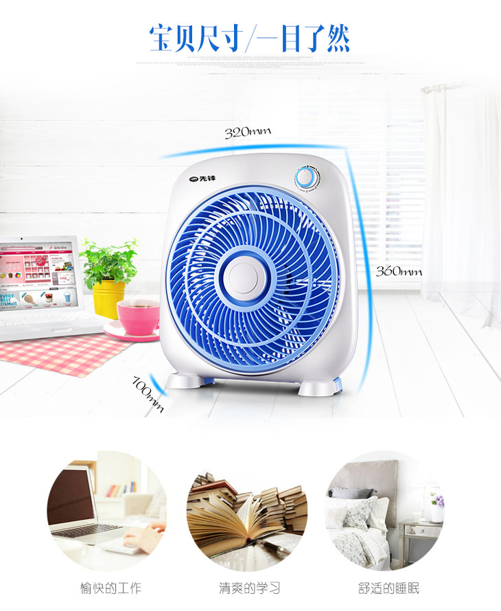 先锋 (Singfun)电风扇 台式DK3302台扇 鸿运扇学生小风扇转页扇 天蓝色