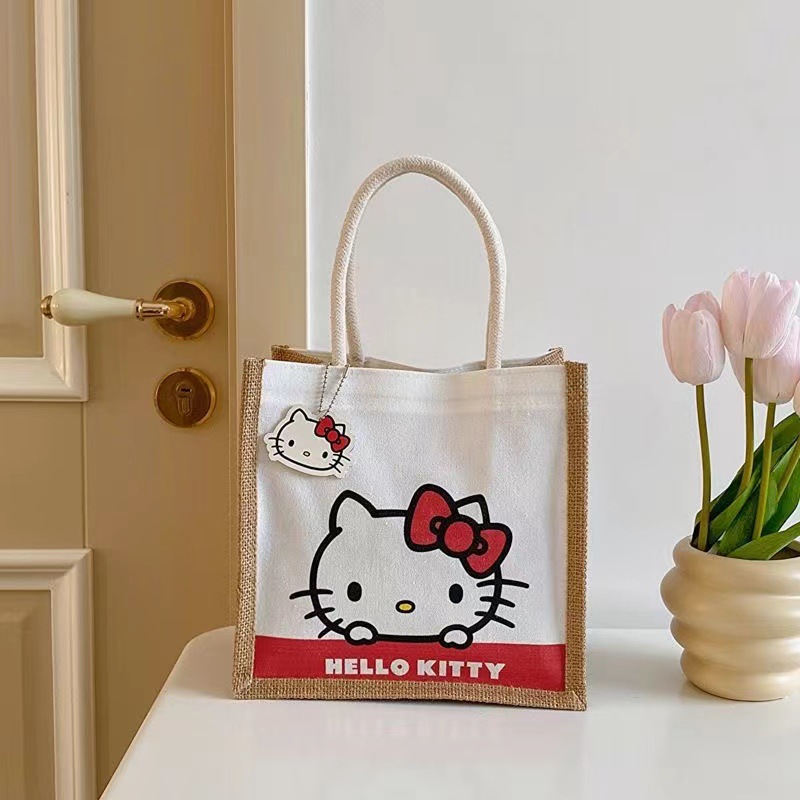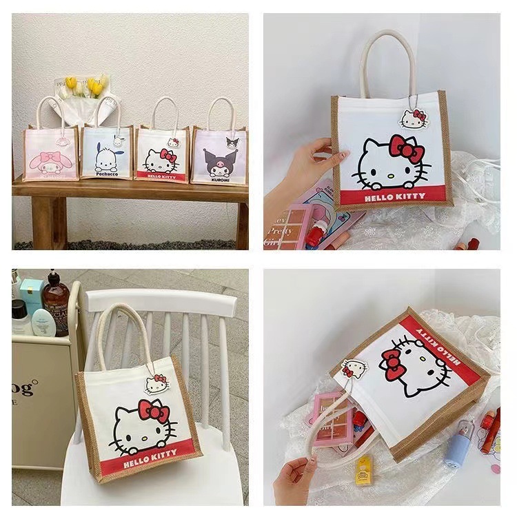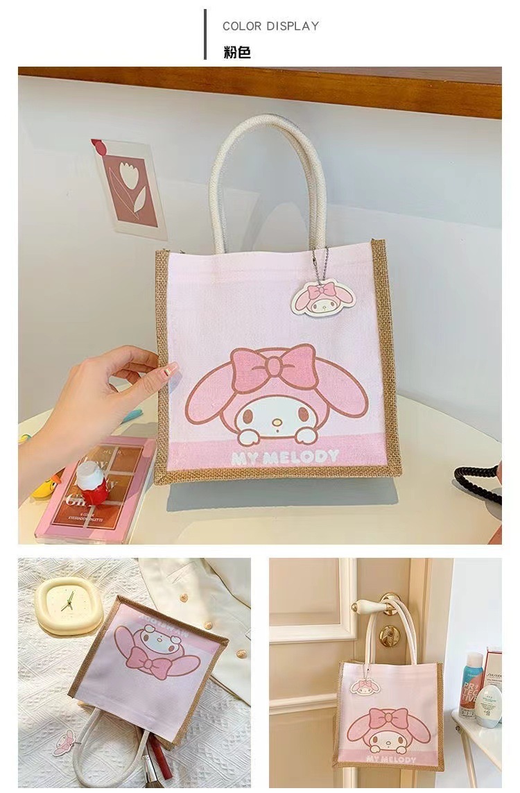 【YW】无忧购三丽鸥可爱卡通麻布包包手提便当包野餐包(截单后3-5天发货)
