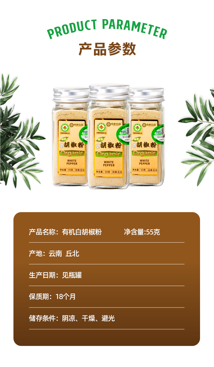 有机白胡椒粉55g|云南文山