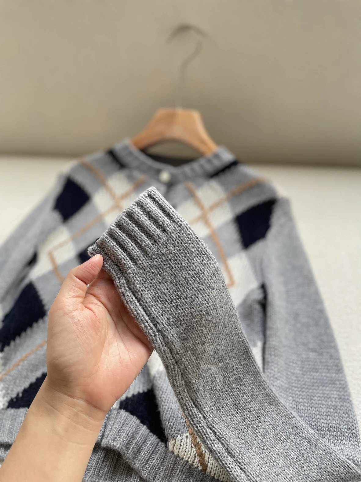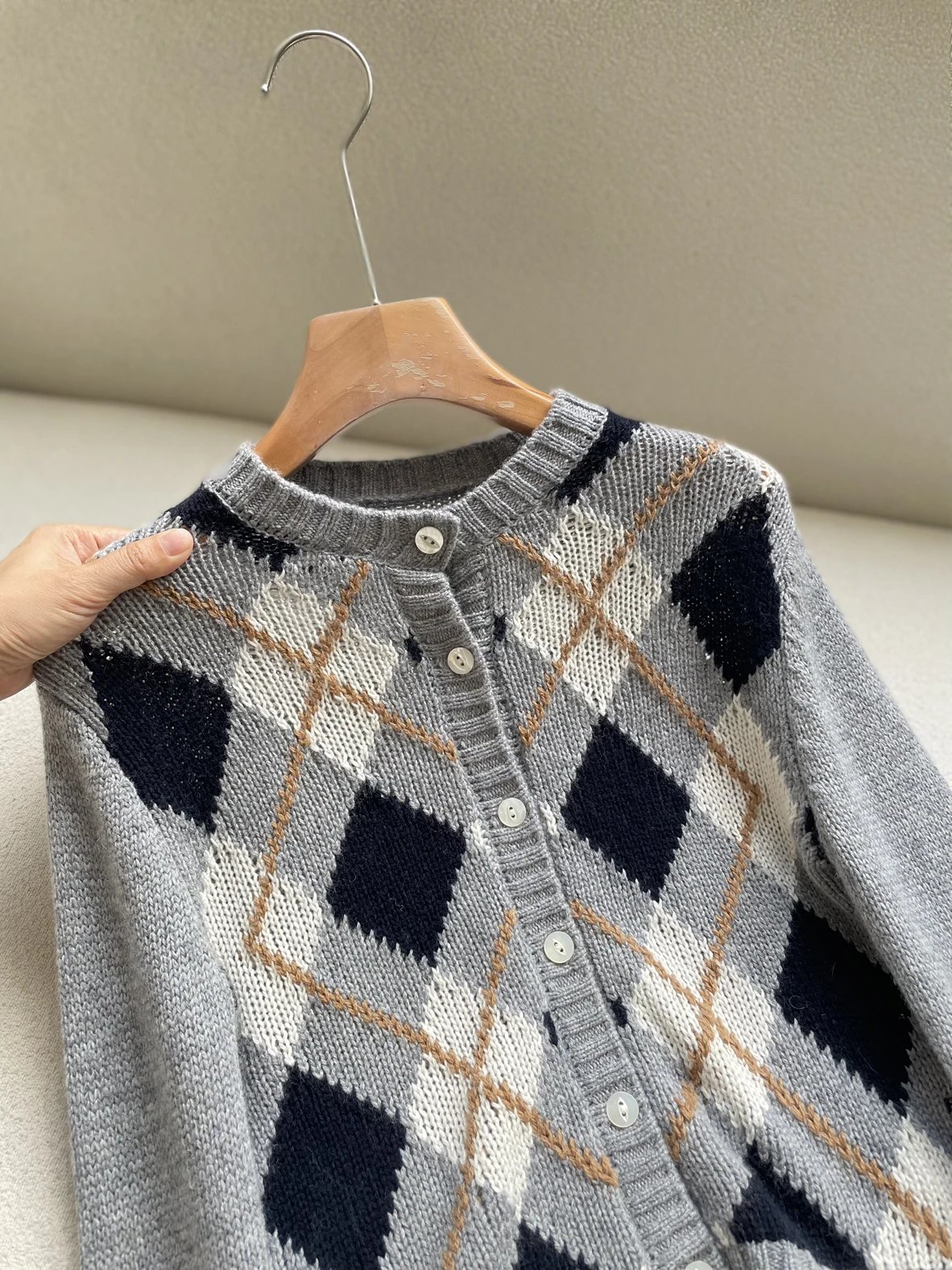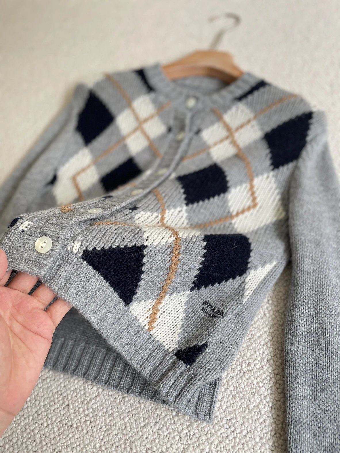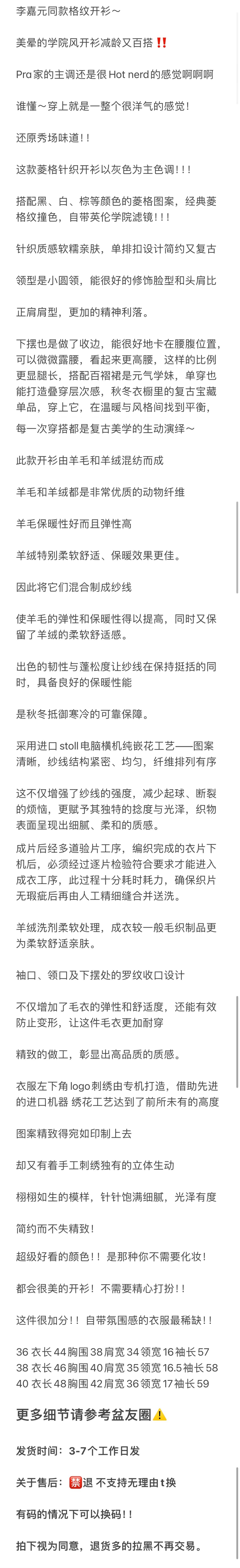 李嘉元同款 PD格纹开衫 羊毛羊绒混纺开衫外套 早秋新款 学院风开衫 减龄又百搭!