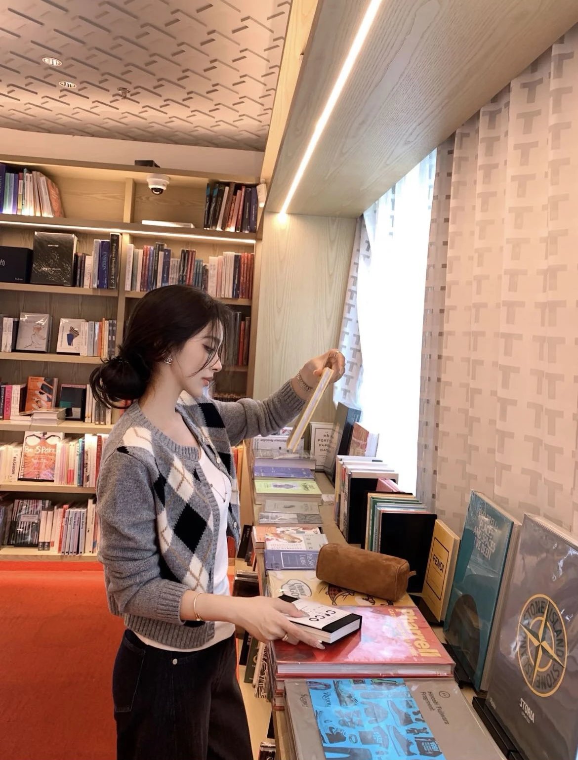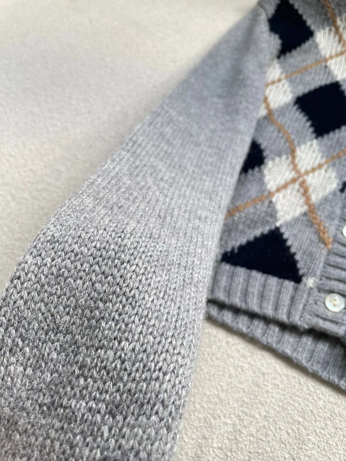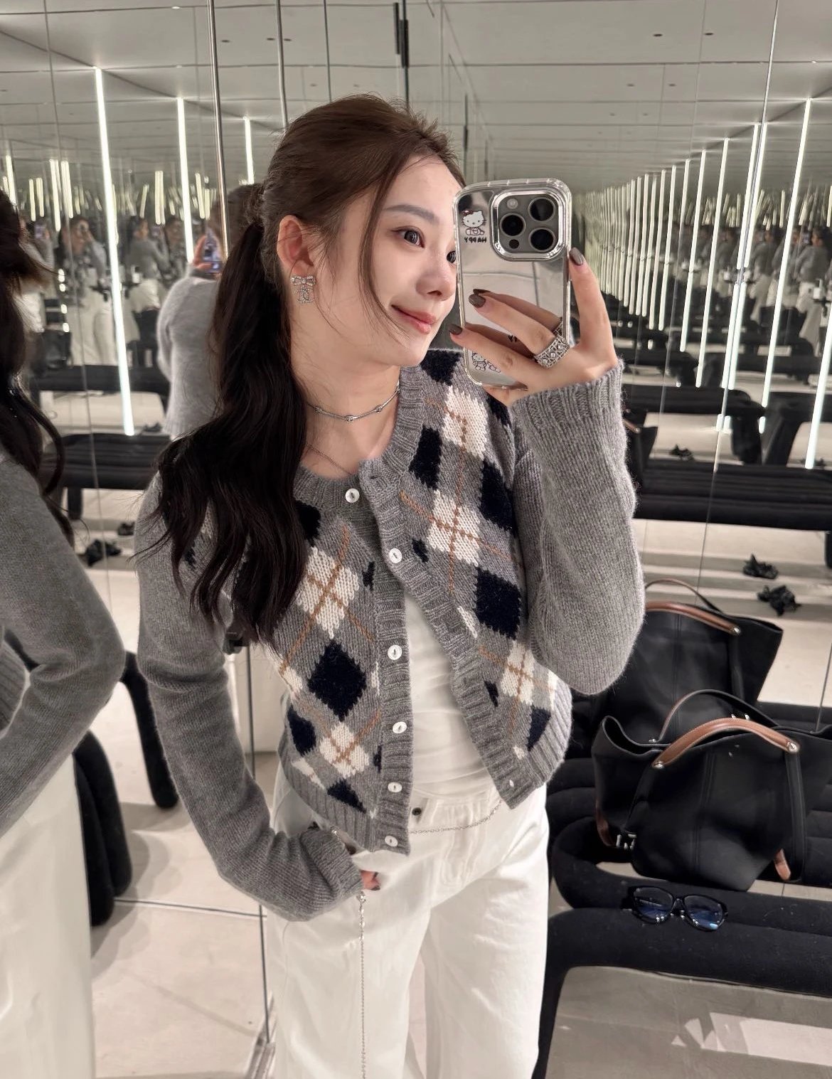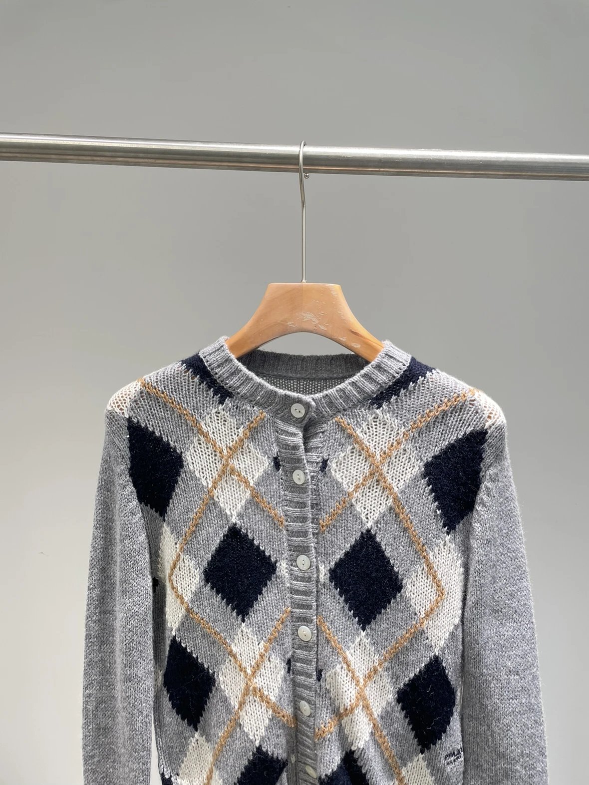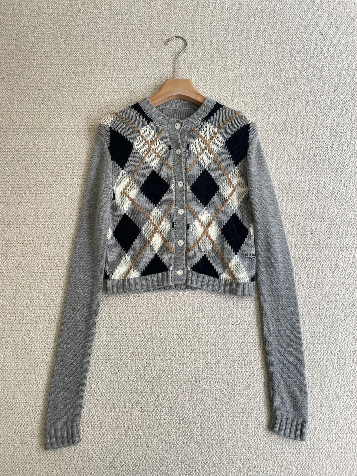 李嘉元同款 PD格纹开衫 羊毛羊绒混纺开衫外套 早秋新款 学院风开衫 减龄又百搭!