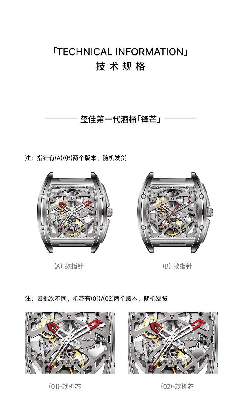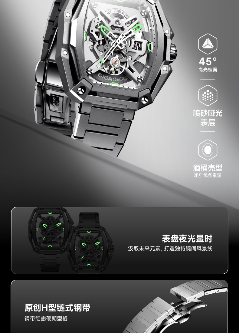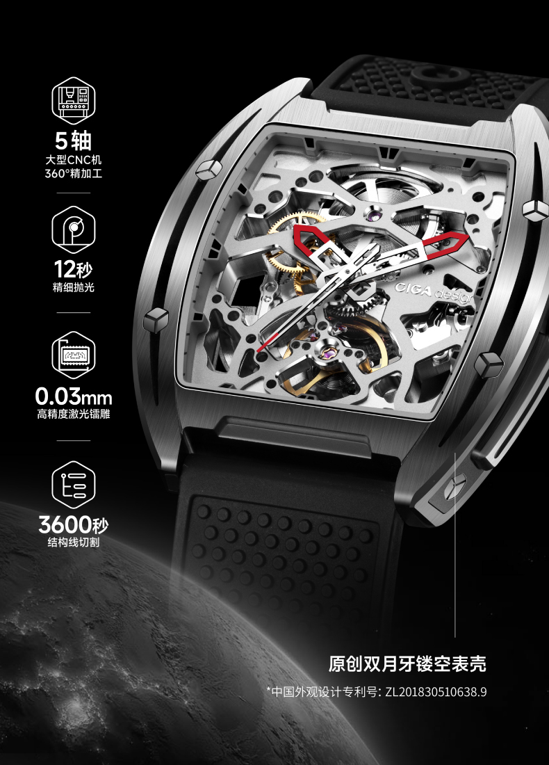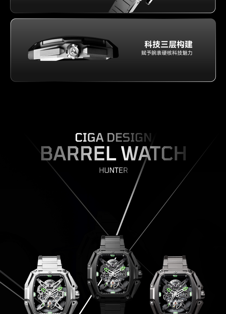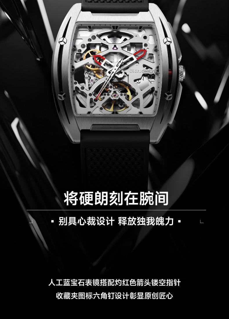 CIGA design玺佳机械表Z系列锋芒酒桶男士手表潮流男款镂空学生表