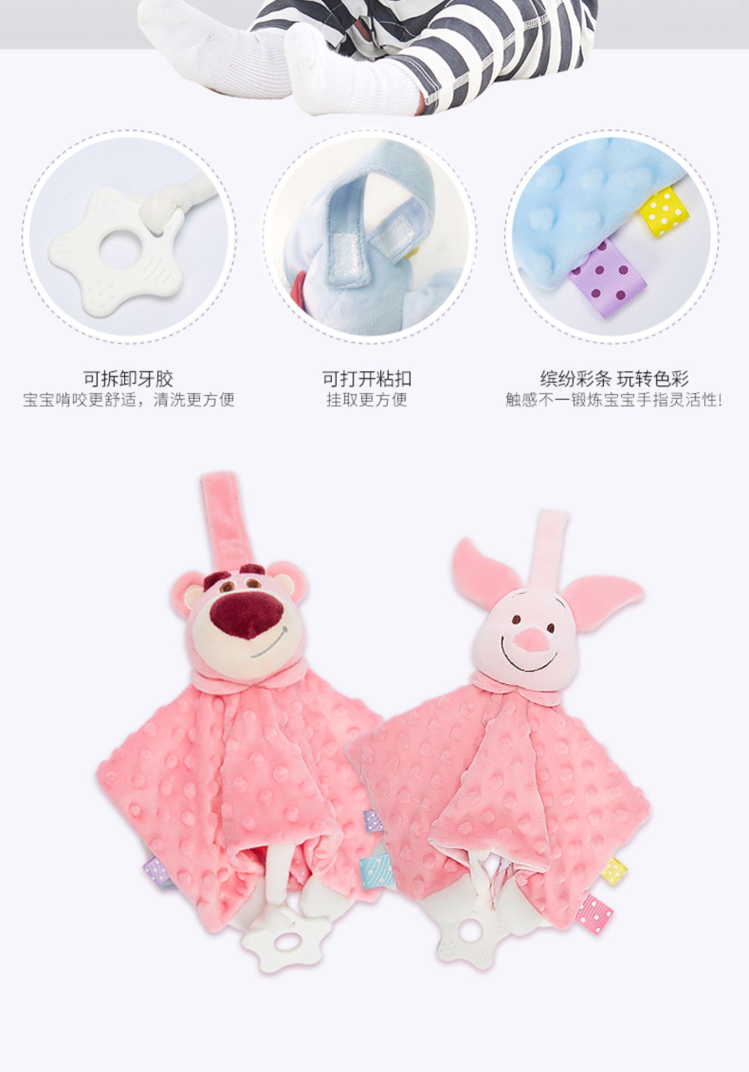 zoobies 迪士尼 豆豆安抚巾婴儿可入口啃咬牙胶安抚玩偶助眠神器0-3