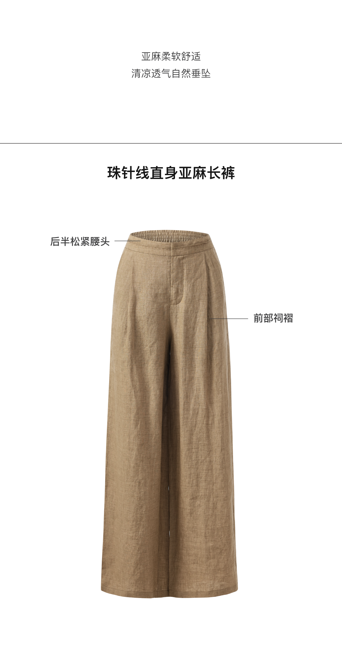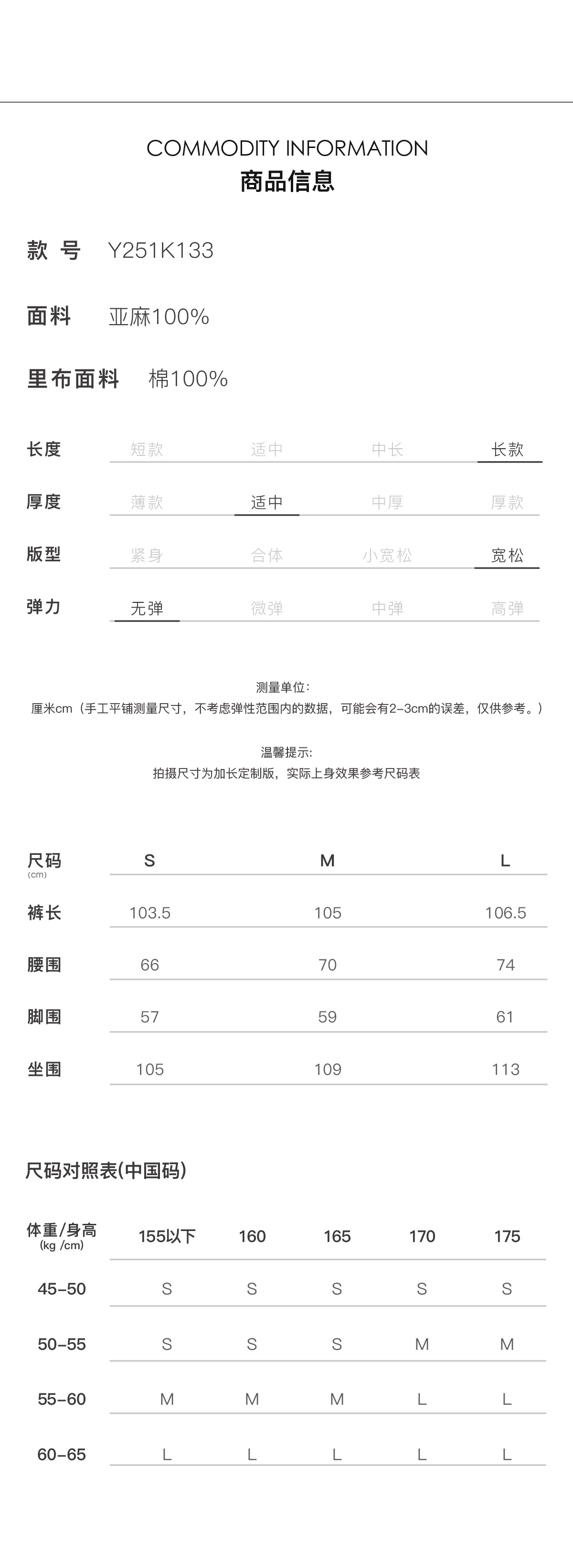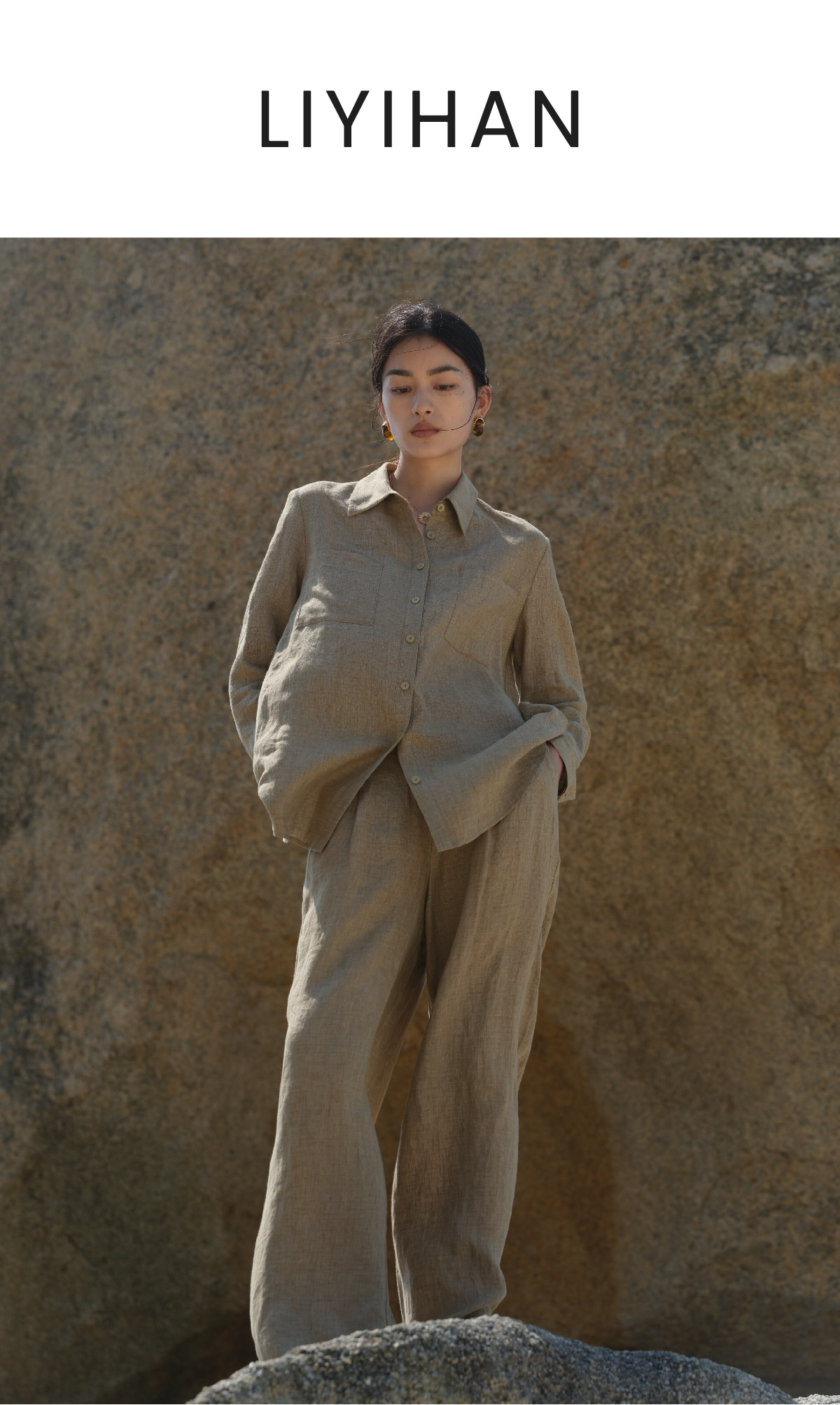 LIYIHAN 25夏老钱风松弛感全亚麻长裤女宽松直筒阔腿休闲裤子
