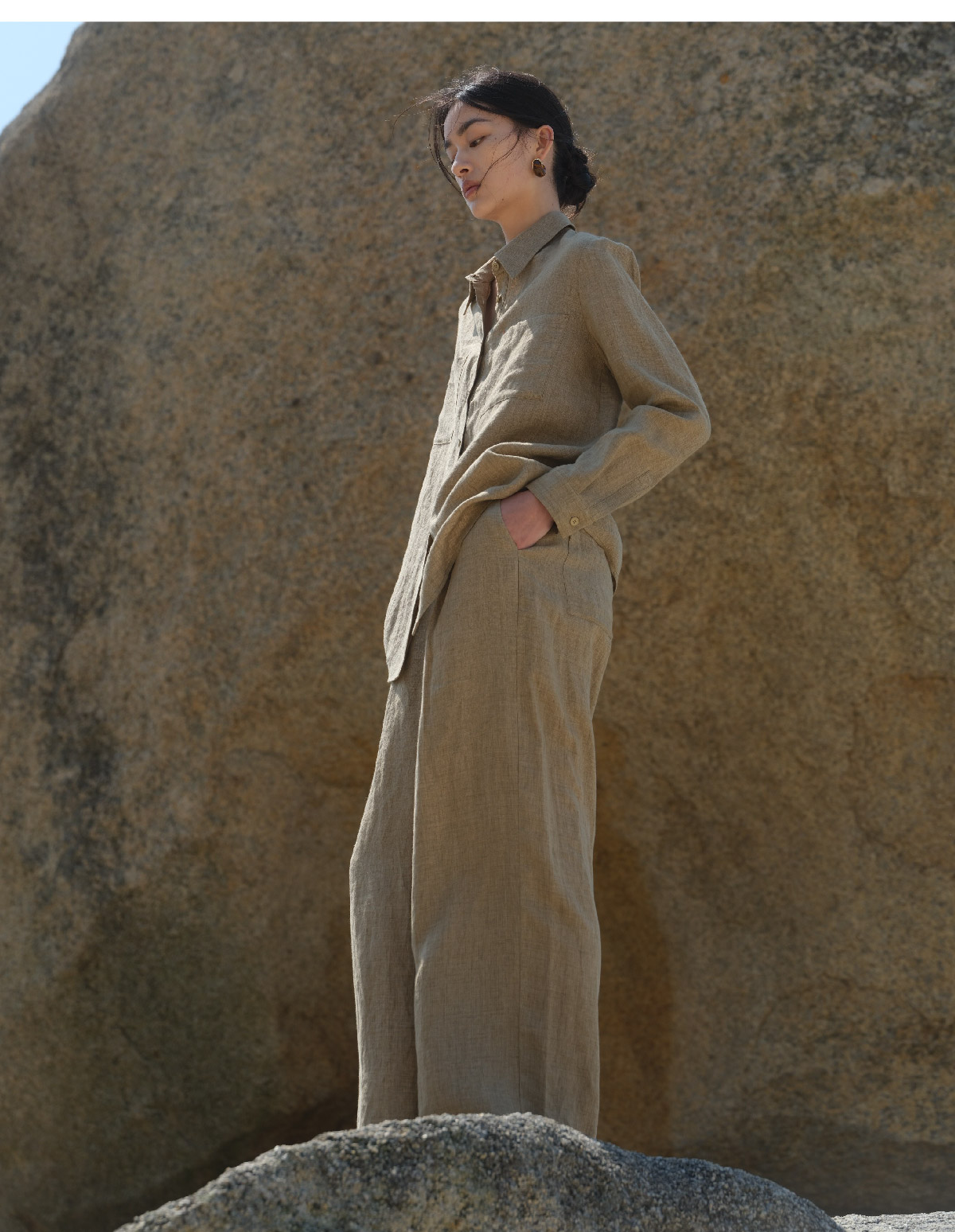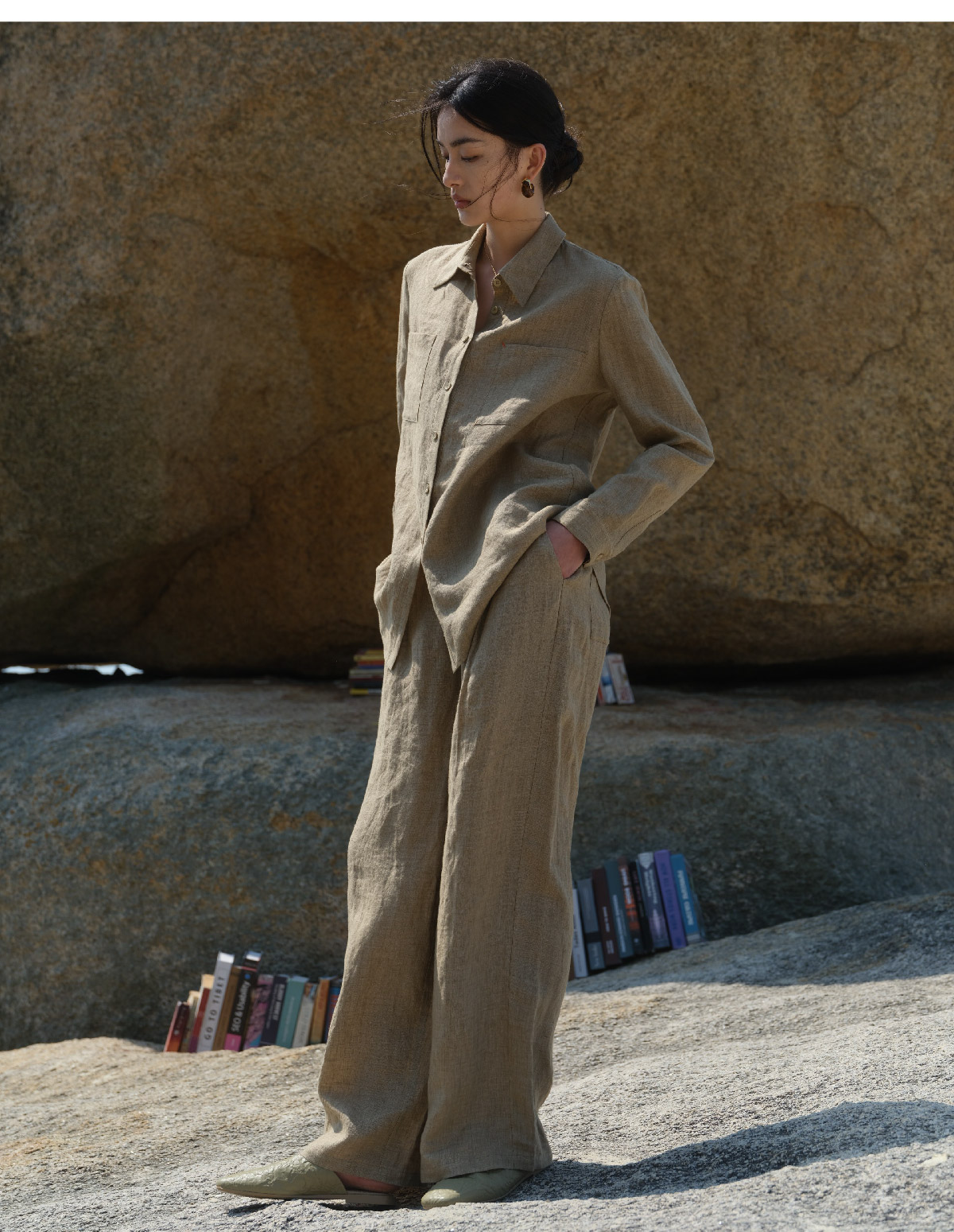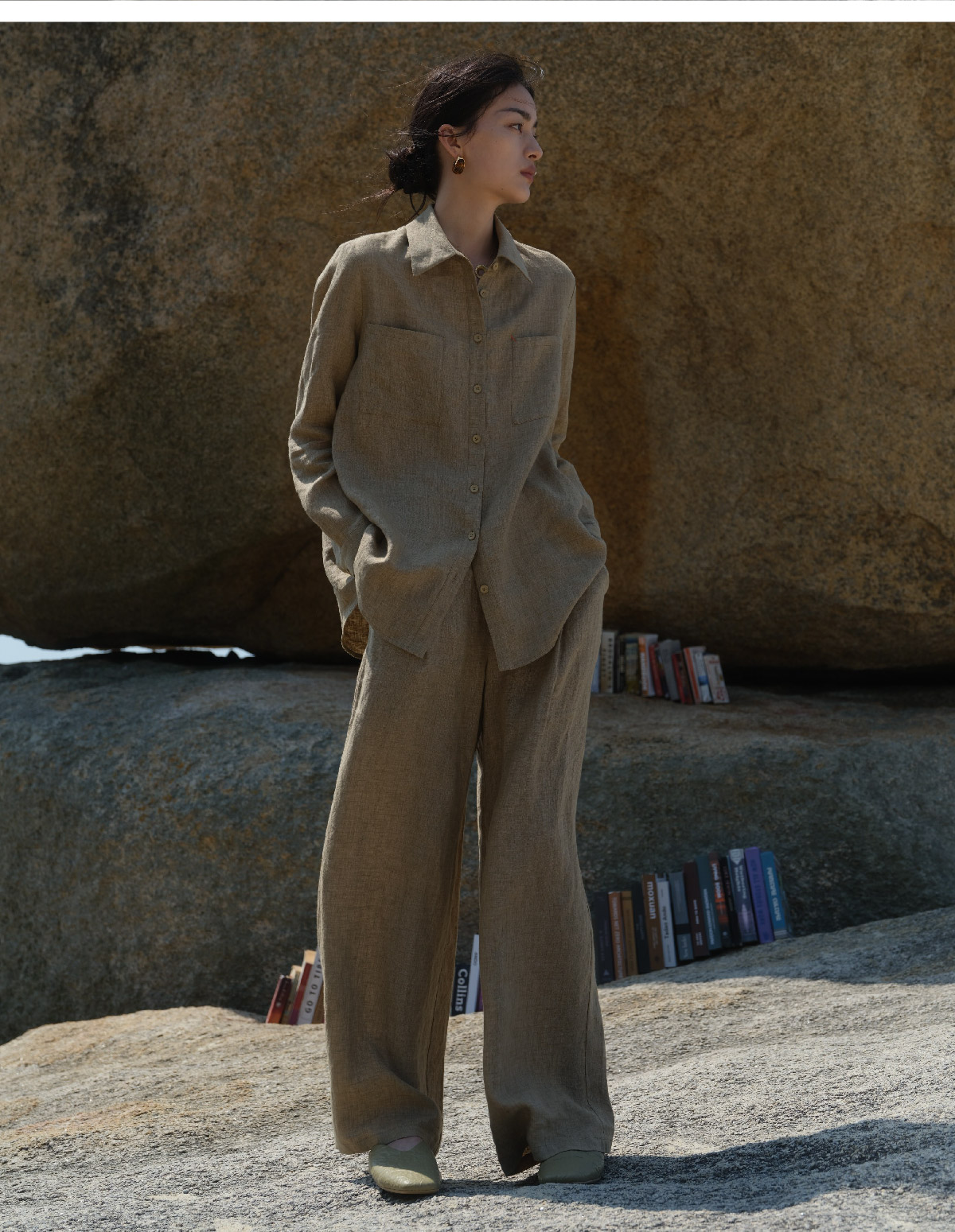 LIYIHAN 25夏老钱风松弛感全亚麻长裤女宽松直筒阔腿休闲裤子