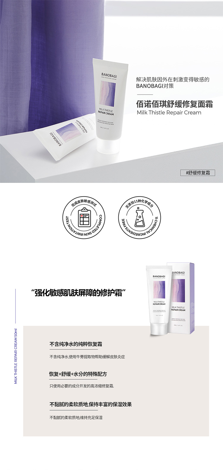 BANOBAGI佰诺佰琪奶蓟修护面霜50ML补水保湿美白滋润润肤