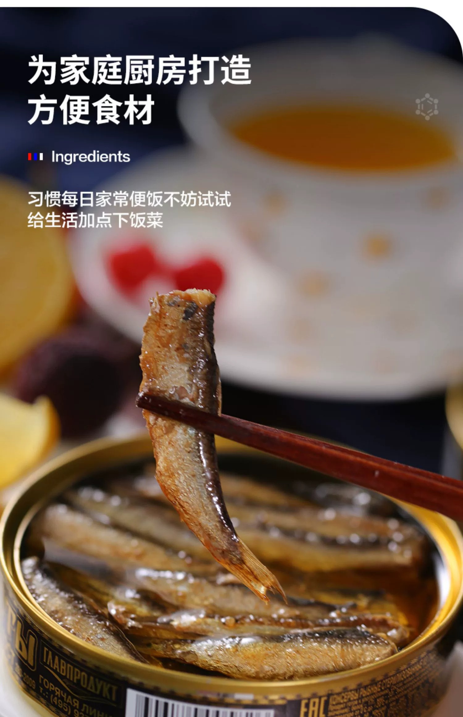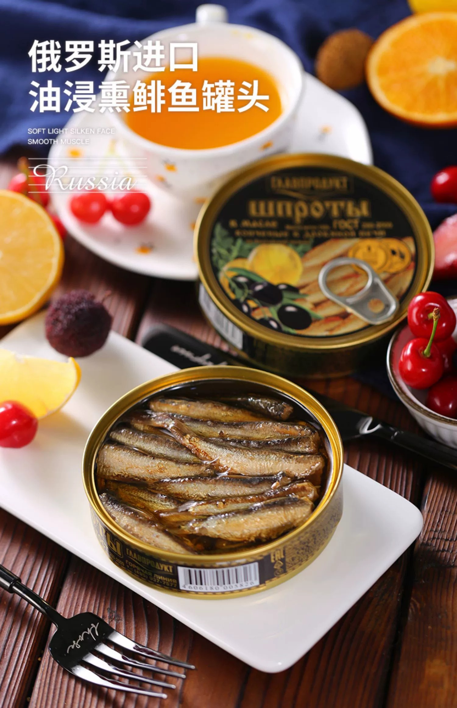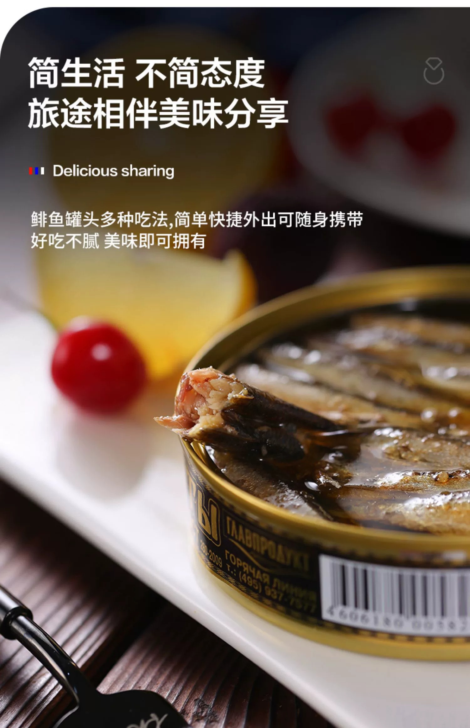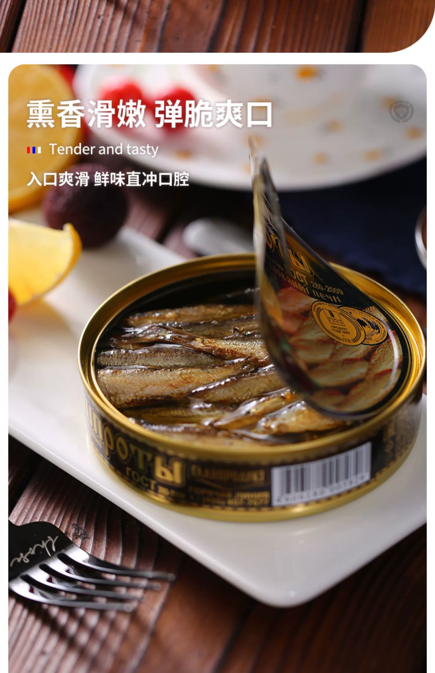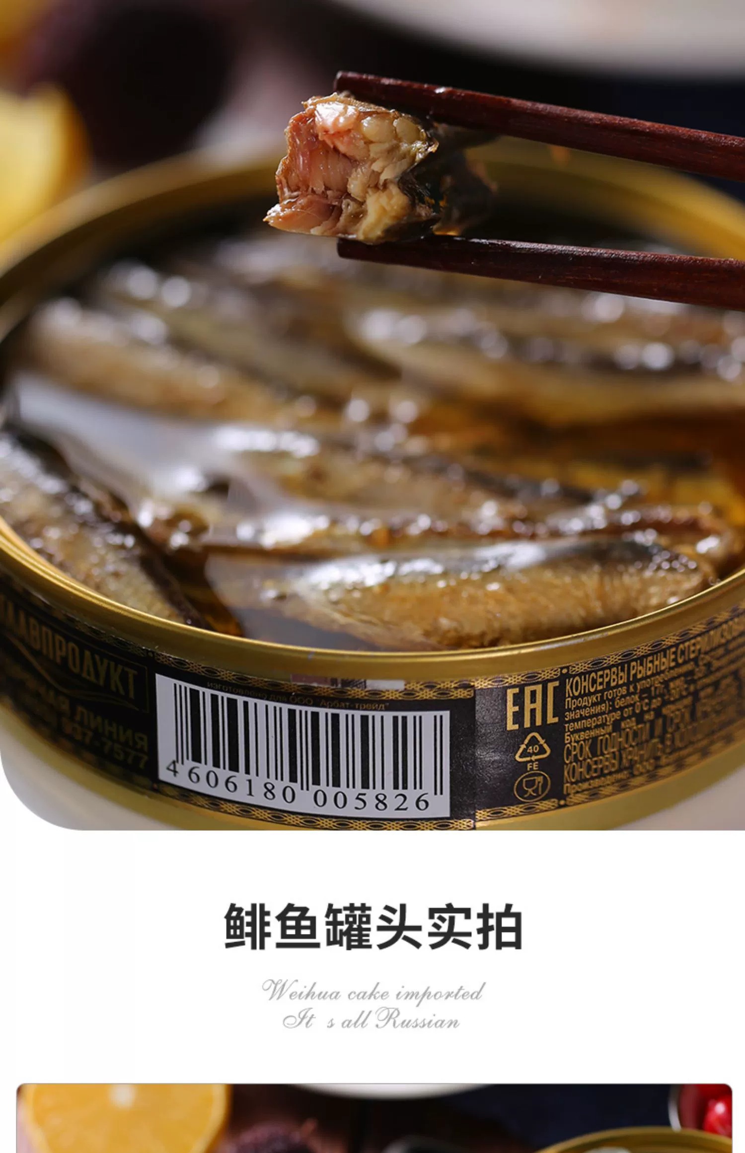 【中欧班列精选】WWJ俄罗斯波罗的海鲱鱼罐头圆盒烟熏油浸鲱鱼进口海鲜罐头