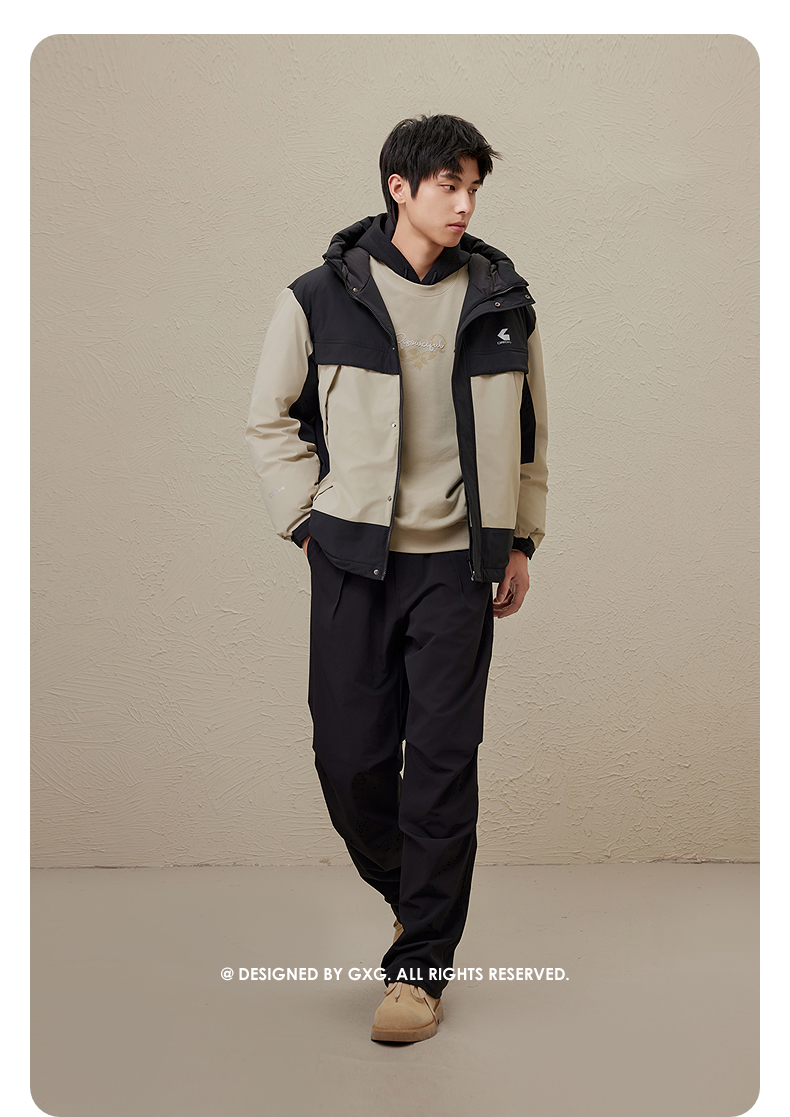 GXG男装 2024冬季热卖GXG男士休闲保暖连帽中长羽绒服男外套鸭绒