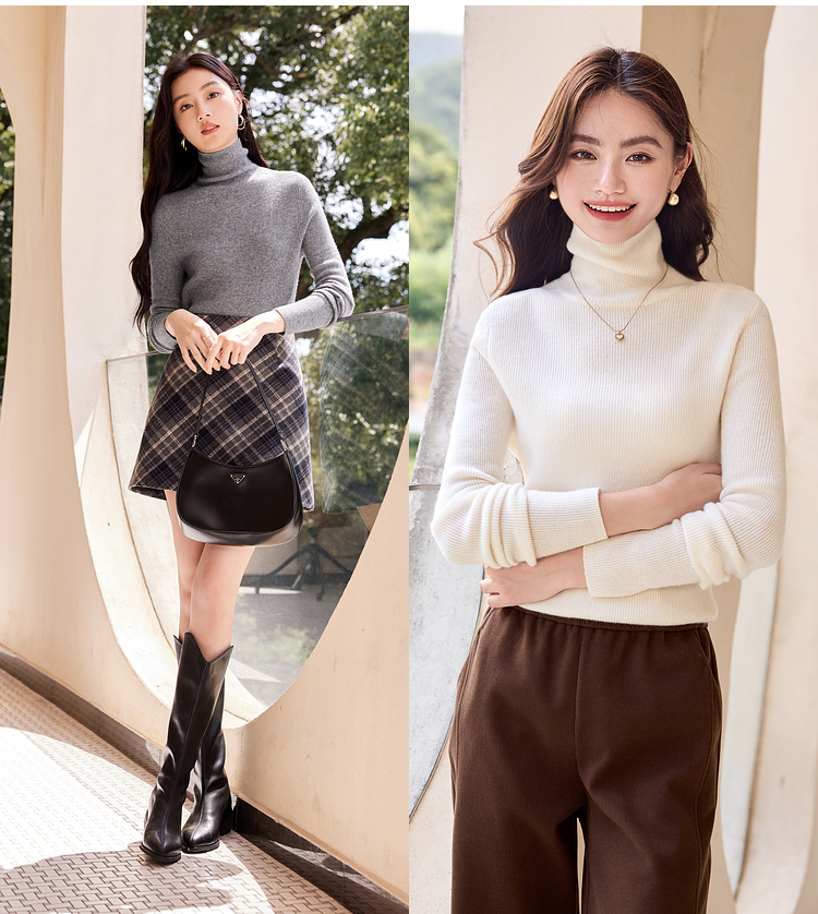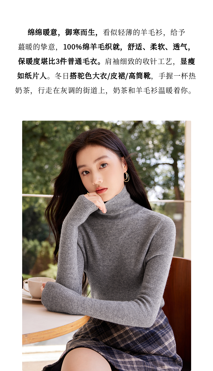 【年货节】熙世界堆堆领*羊毛衫秋冬2025新款修身内搭针织打底高领毛衣
