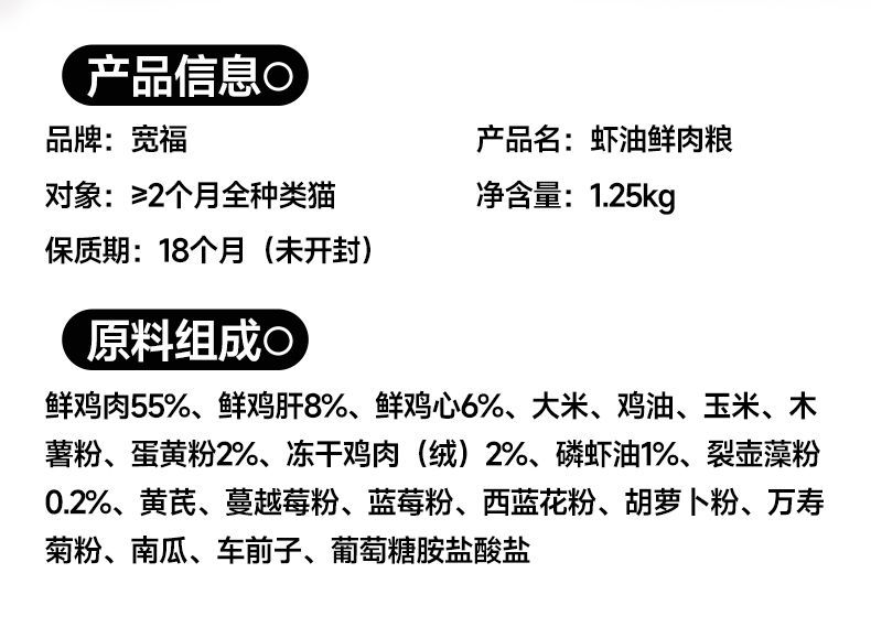 【虾油鲜肉粮】宽福 靓美美猫粮 磷虾油助力美毛 55%鲜鸡肉添加低脂高蛋白 鸡肉绒包裹适口性高