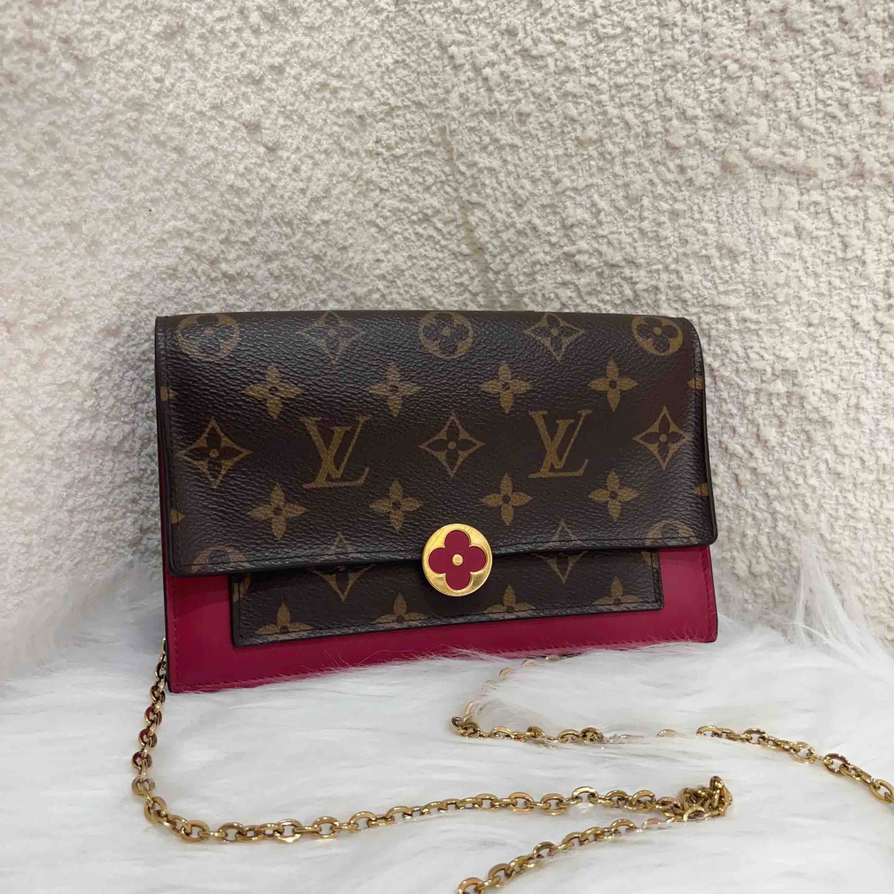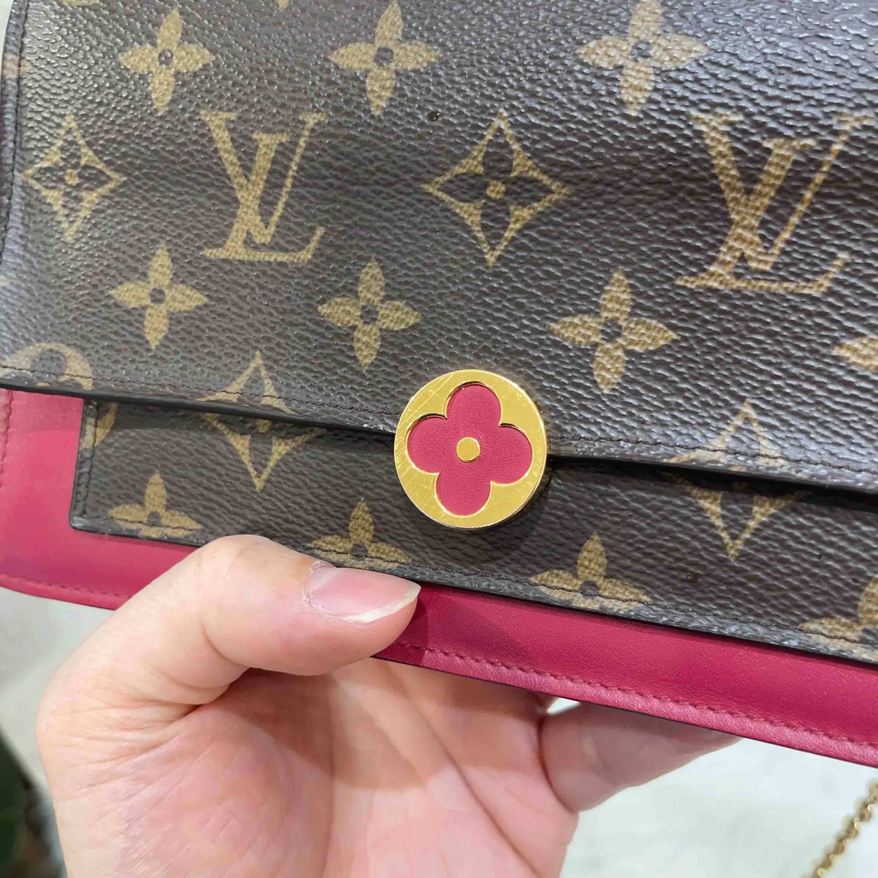 【商品详情】正品二手 LV Flore 老花拼皮 花朵 链条包💼95新 19*12 配件:票 链条 防尘袋。金属正常使用感。时尚又百搭。