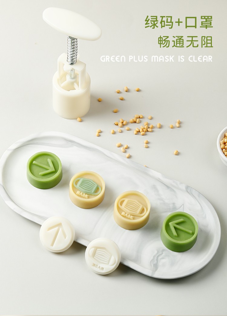 30克绿码口罩月饼/绿豆糕模2片 家用小号冰皮月饼压模工具