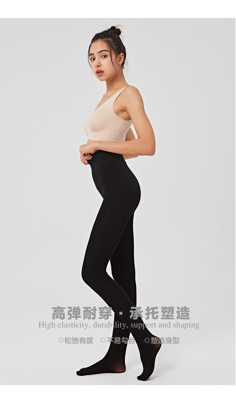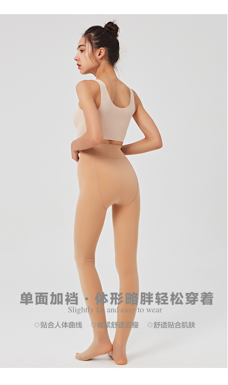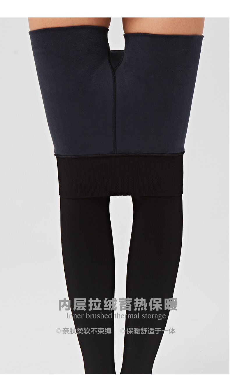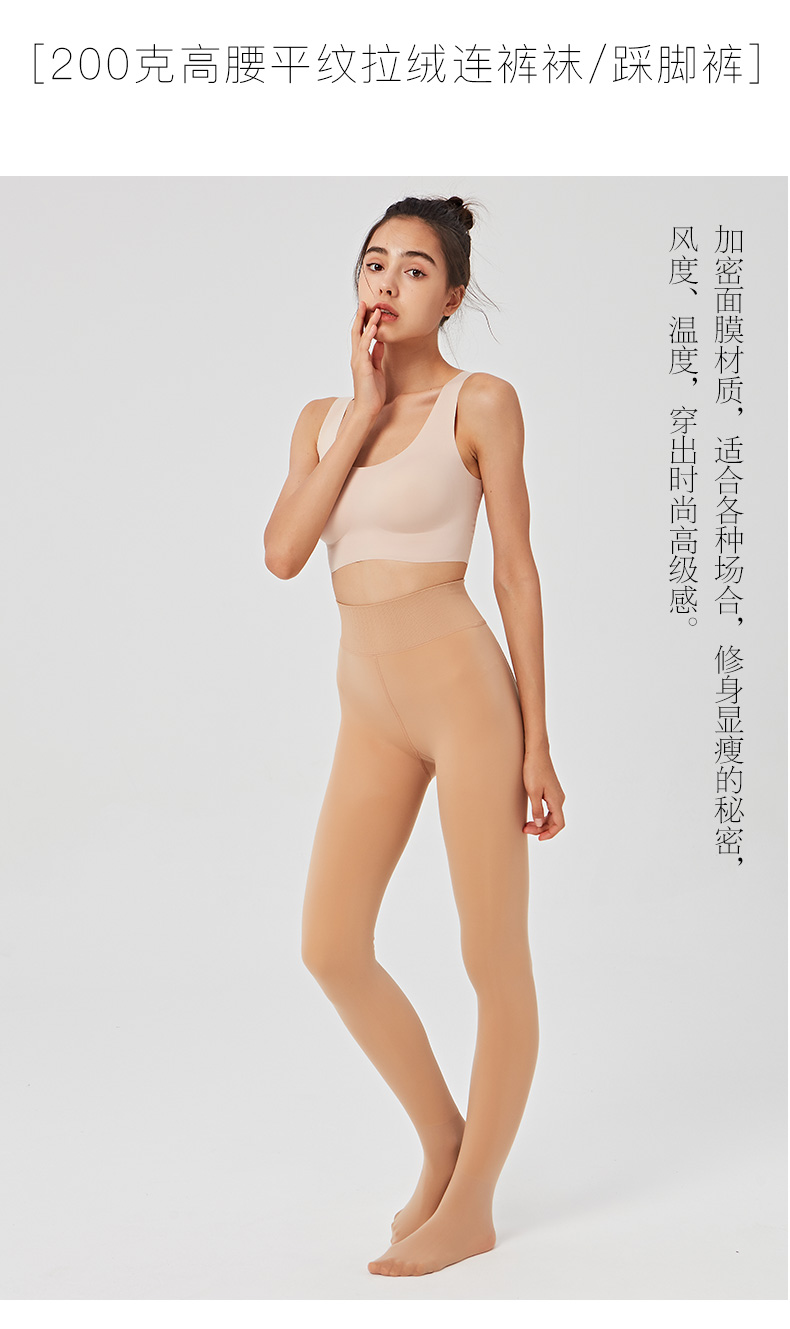 秋冬女外层面膜质感水光肌内层拉绒保暖200克高腰平纹拉绒踩脚裤连裤袜