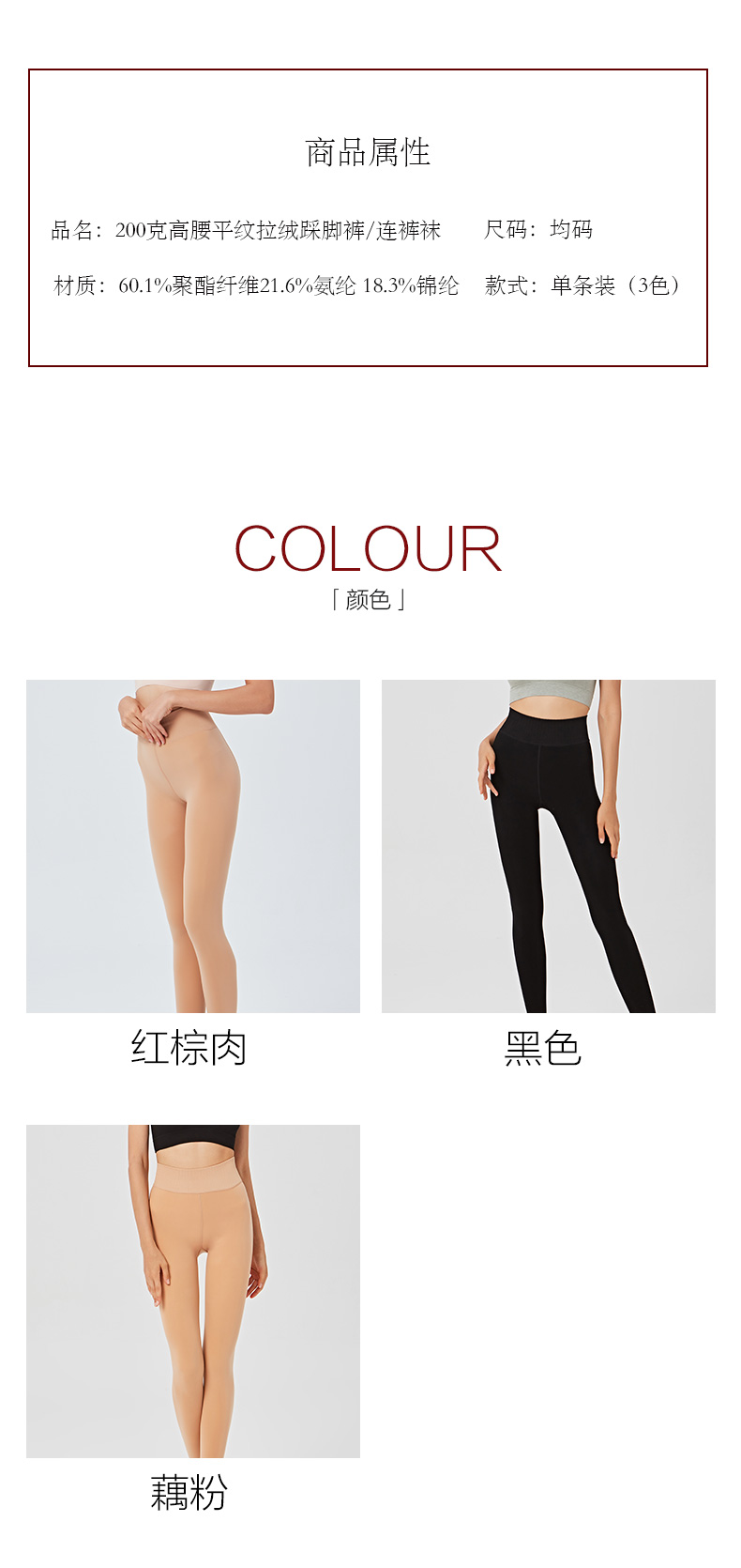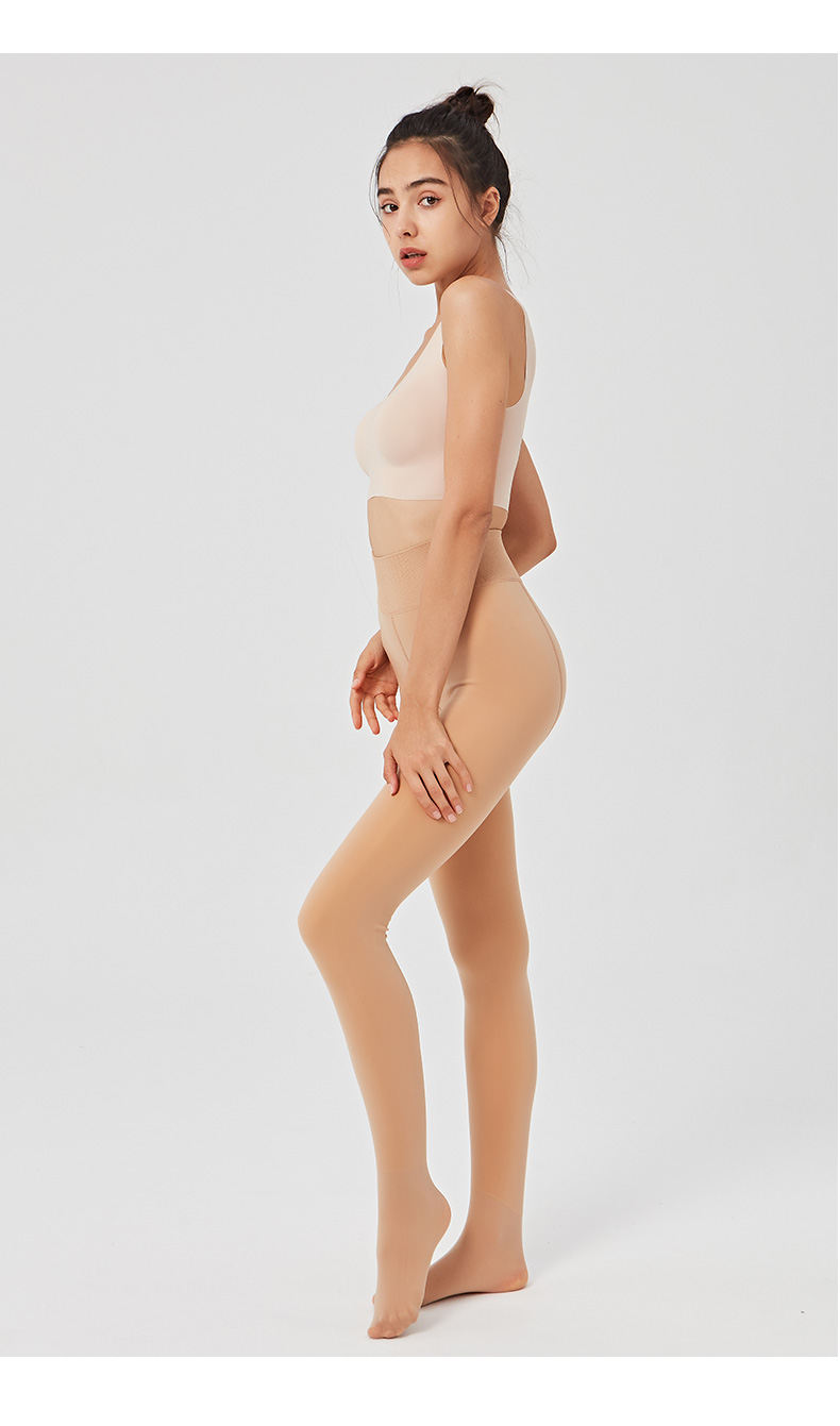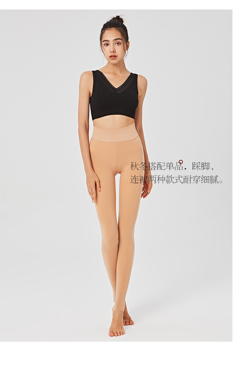 秋冬女外层面膜质感水光肌内层拉绒保暖200克高腰平纹拉绒踩脚裤连裤袜