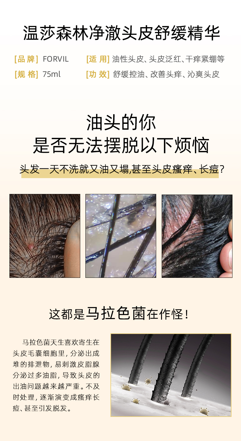 【璐璐护发秘籍】温莎森林FORVIL 针对头皮痘痘 干痒 净澈头皮舒缓精华75ml 明星同款