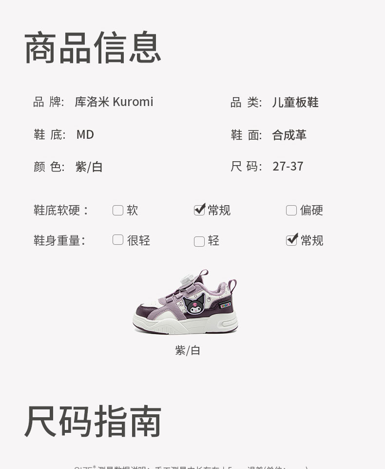 hellokitty童鞋冬季库洛米儿童板鞋27-37码 KU5546960