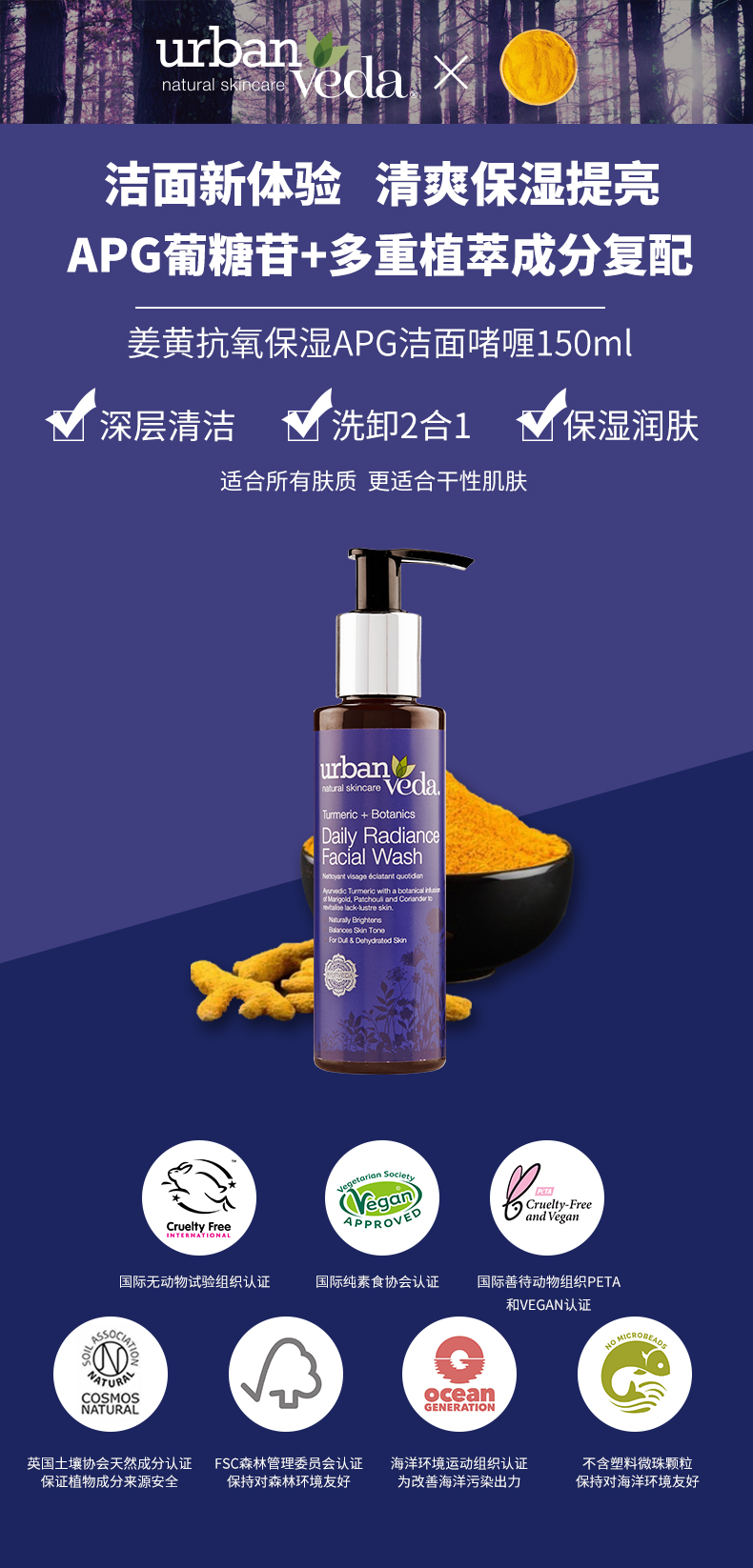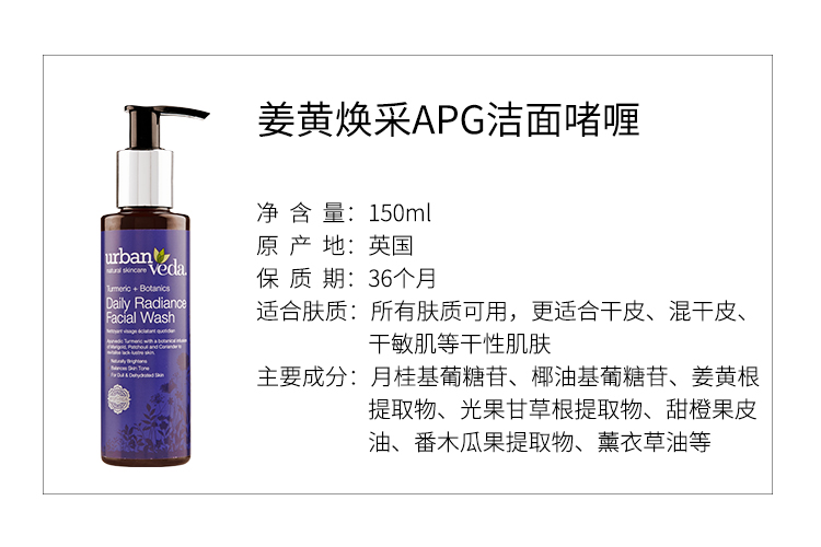 Urban Veda 姜黄抗氧保湿APG洁面啫喱150ml