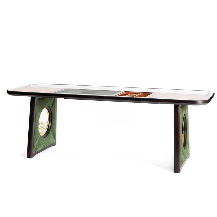 这款茶桌的精炼之处是多元素的组合