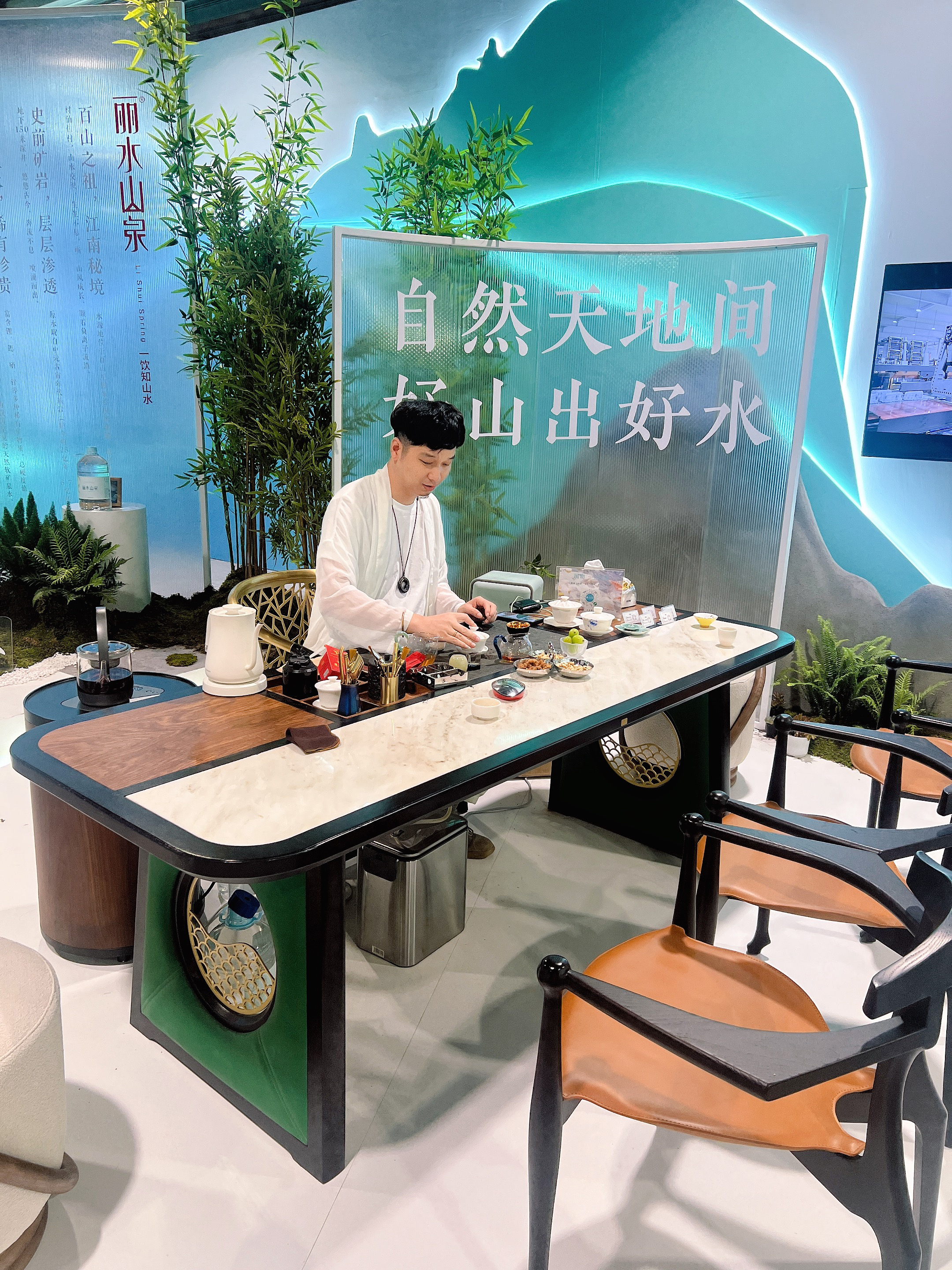 印象中的茶桌常见禅意感的简练线条,水龙吟则打破常规,带来新时代的茶意空间