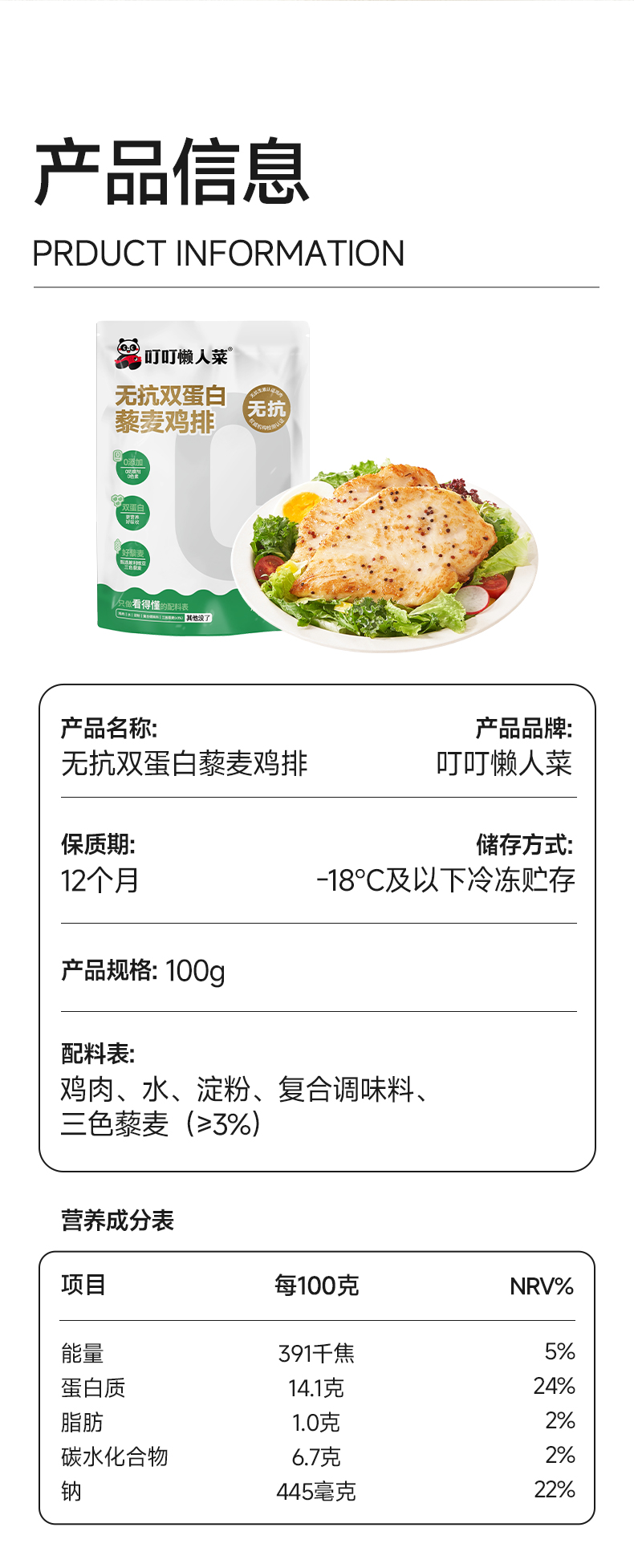 【叮叮懒人菜 爆款推荐】新品藜麦鸡排 动物+植物双蛋白,更营养好吸收