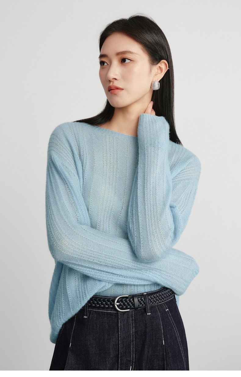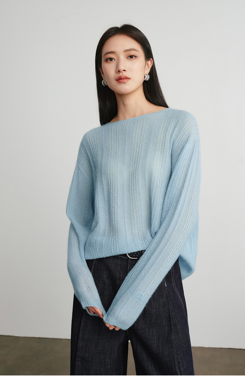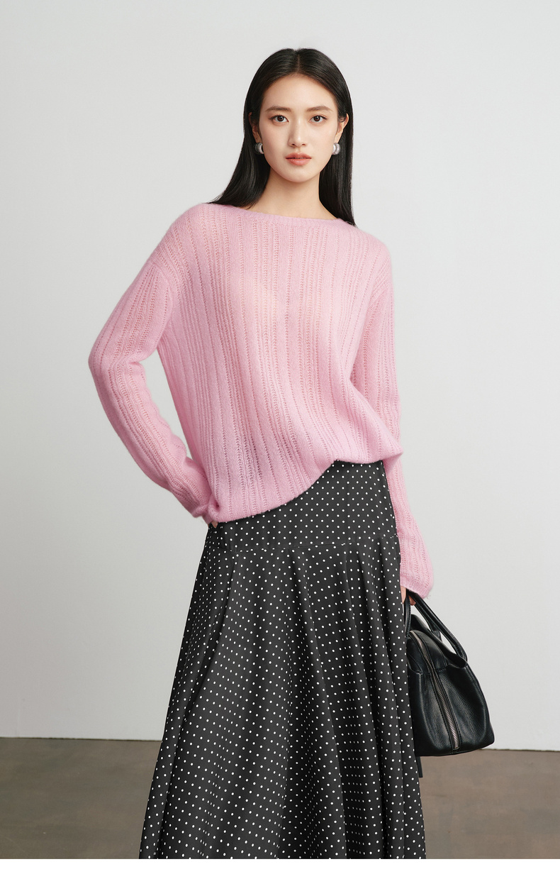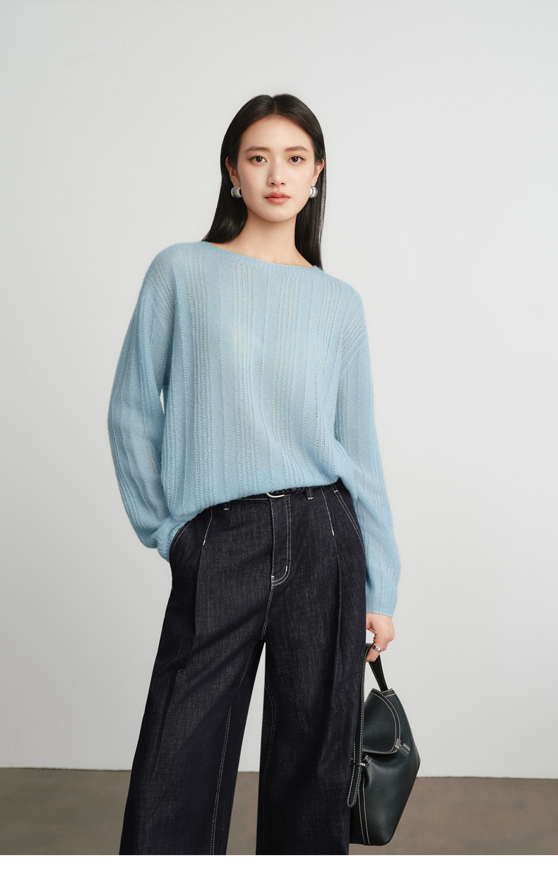 【严选】蒋欣代言伊芙丽桑蚕丝羊绒软糯镂空针织衫女2026春季新款毛衫女1H2930571Q