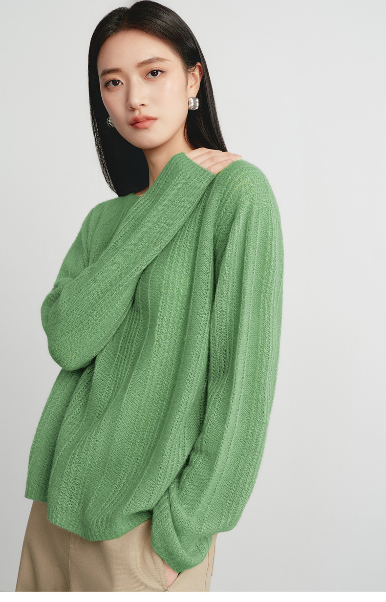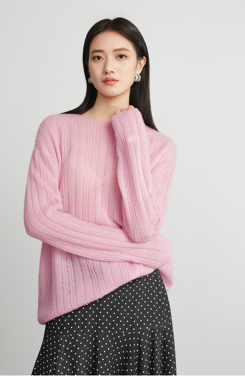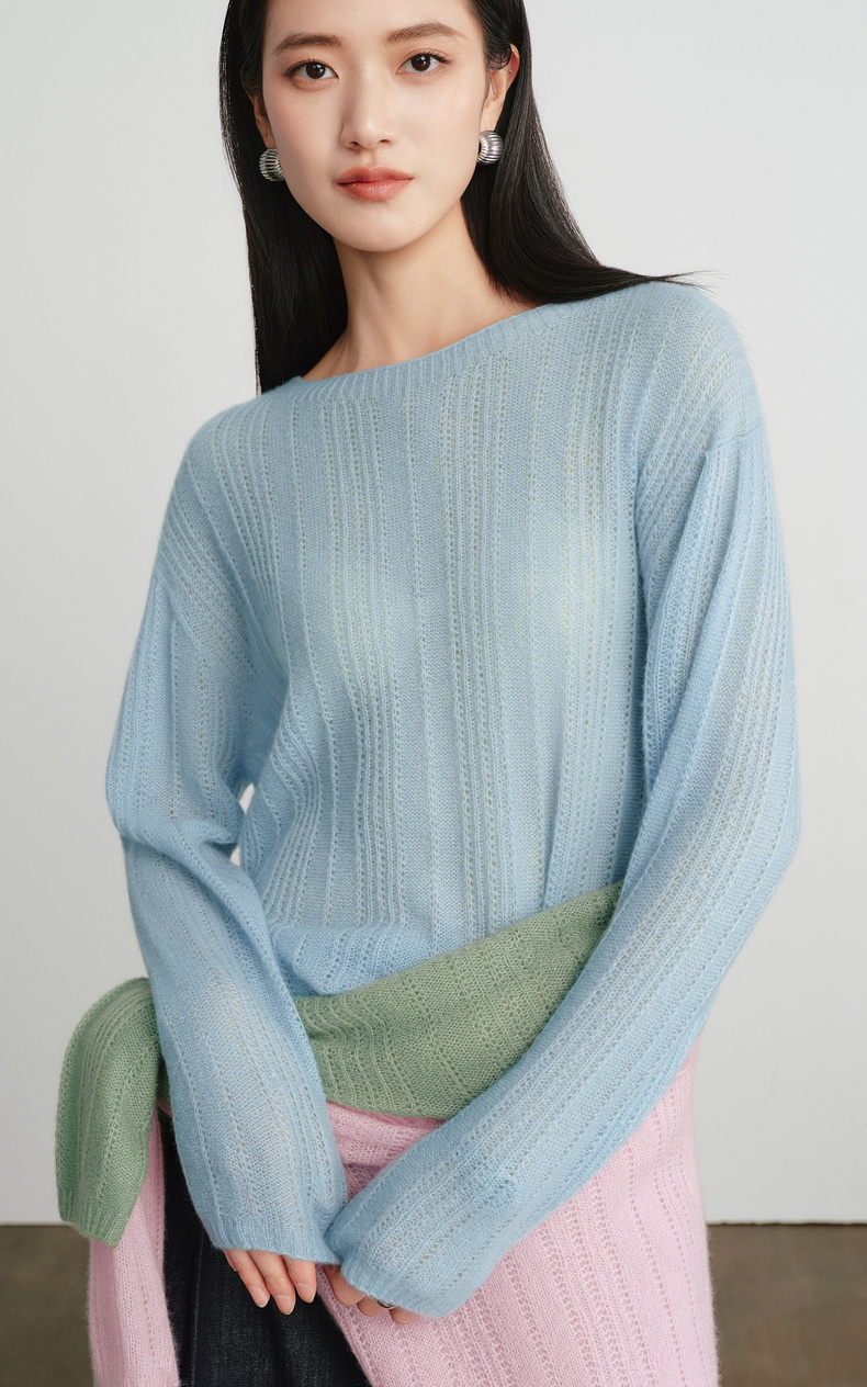 【严选】蒋欣代言伊芙丽桑蚕丝羊绒软糯镂空针织衫女2026春季新款毛衫女1H2930571Q