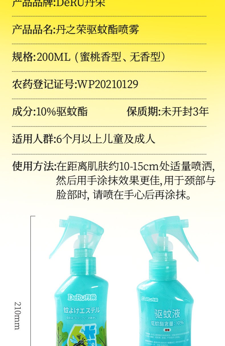 DeRU丹栄 驱蚊酯喷雾200ml(蜜桃香)