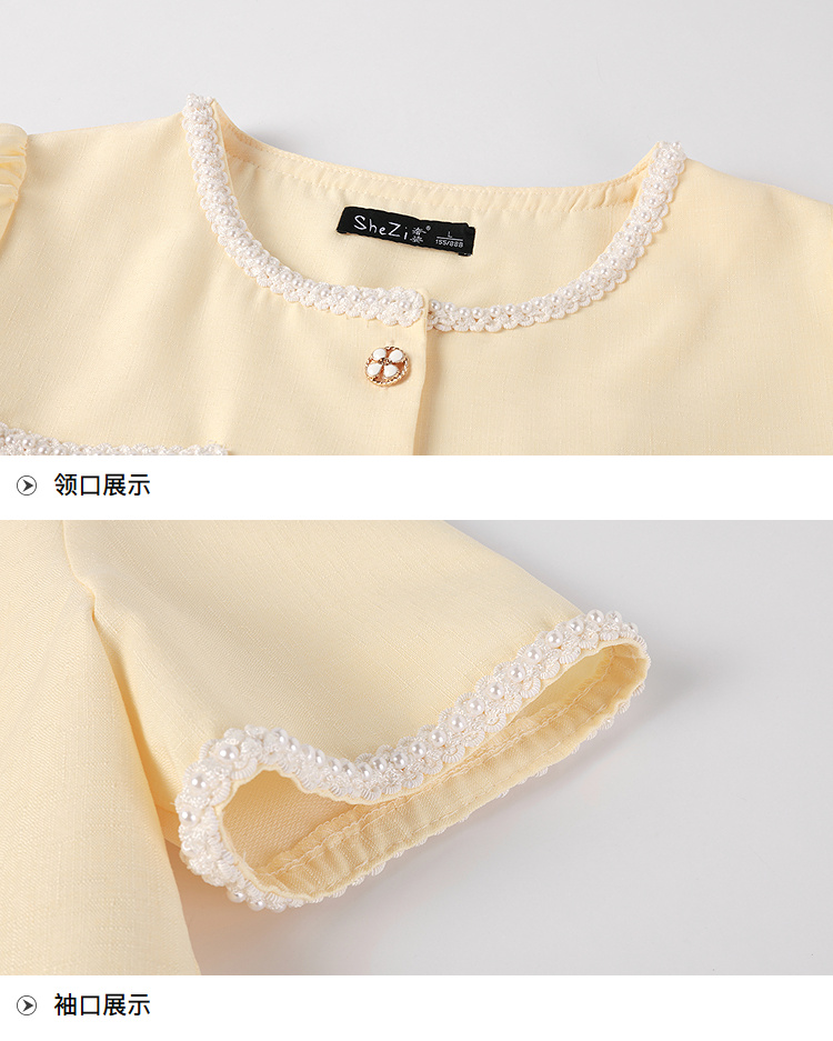 奢姿大码女装2026夏季减龄绣花V领两件套胖妹妹花边甜美时尚套装9962972006