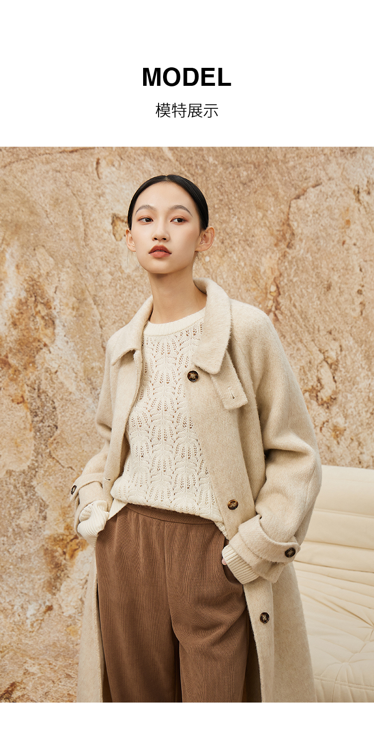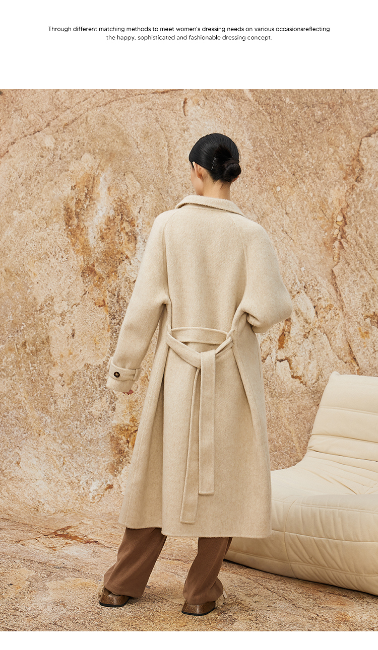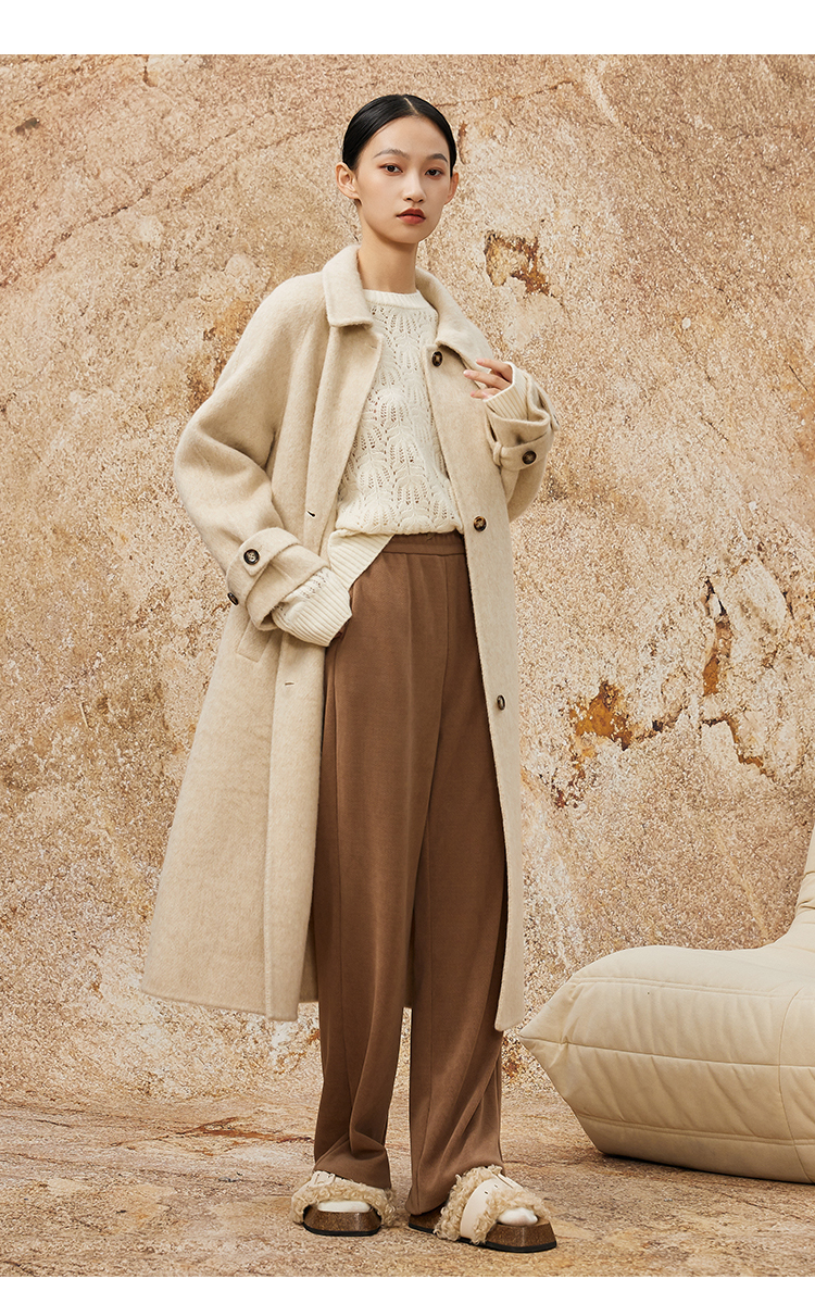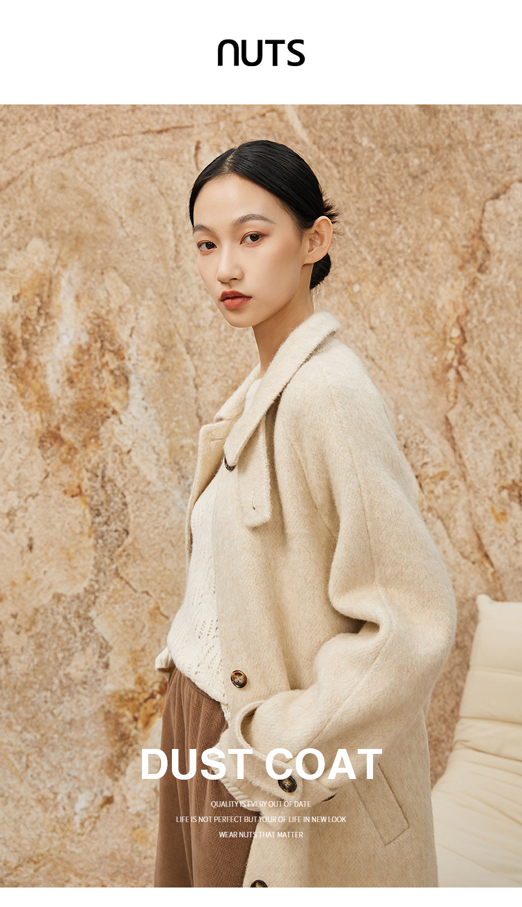 NUTS商场同款秋冬高级感气质翻领简约双面毛呢大衣外套女343152036