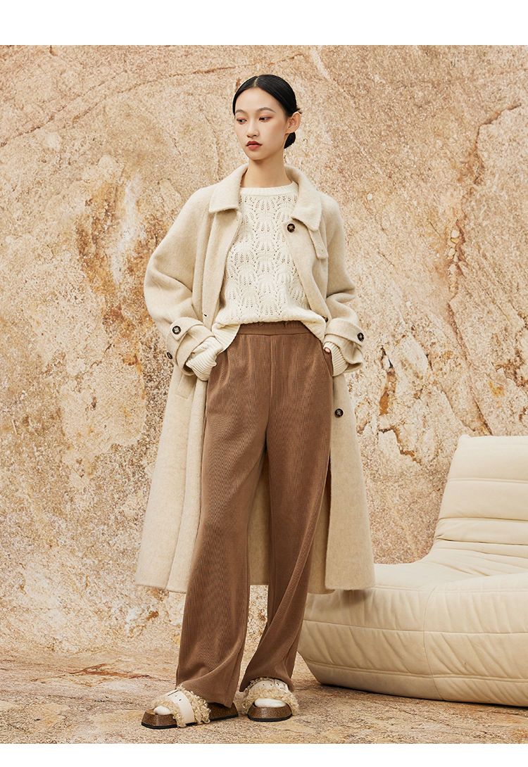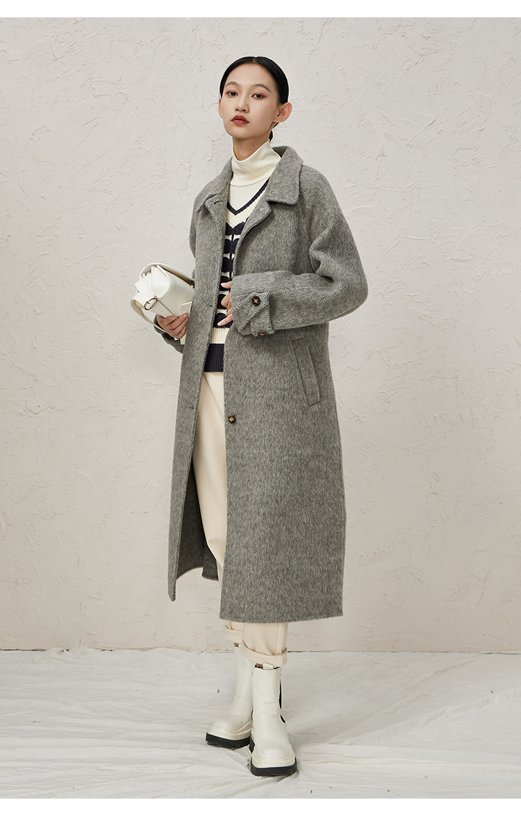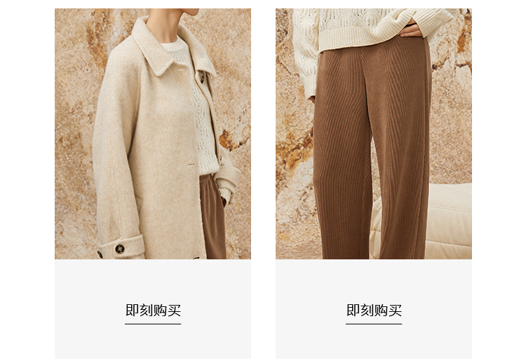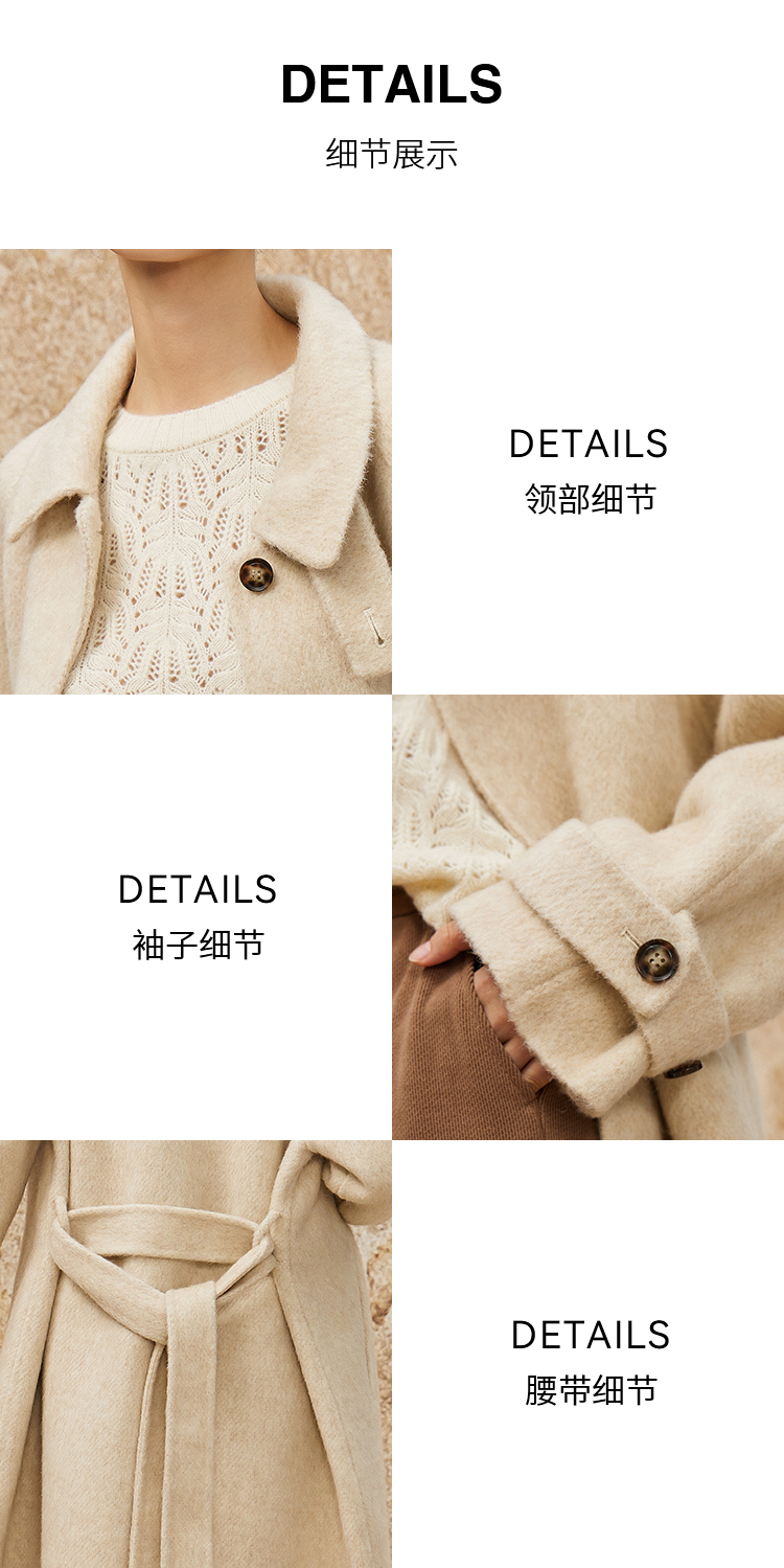 NUTS商场同款秋冬高级感气质翻领简约双面毛呢大衣外套女343152036