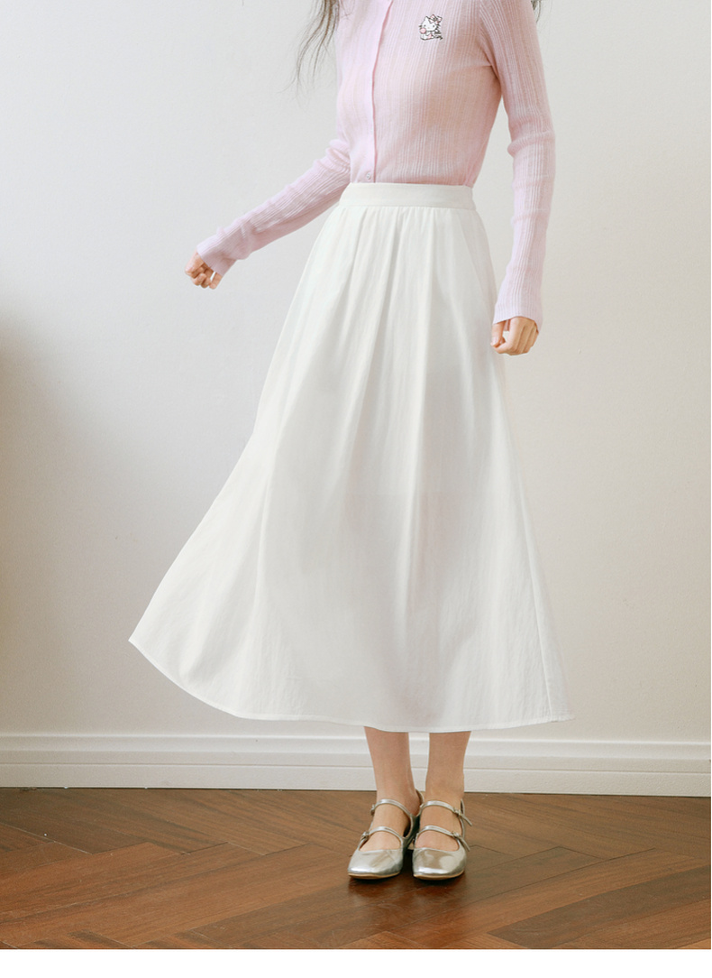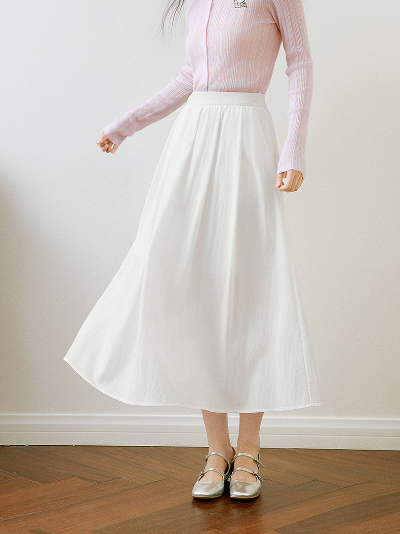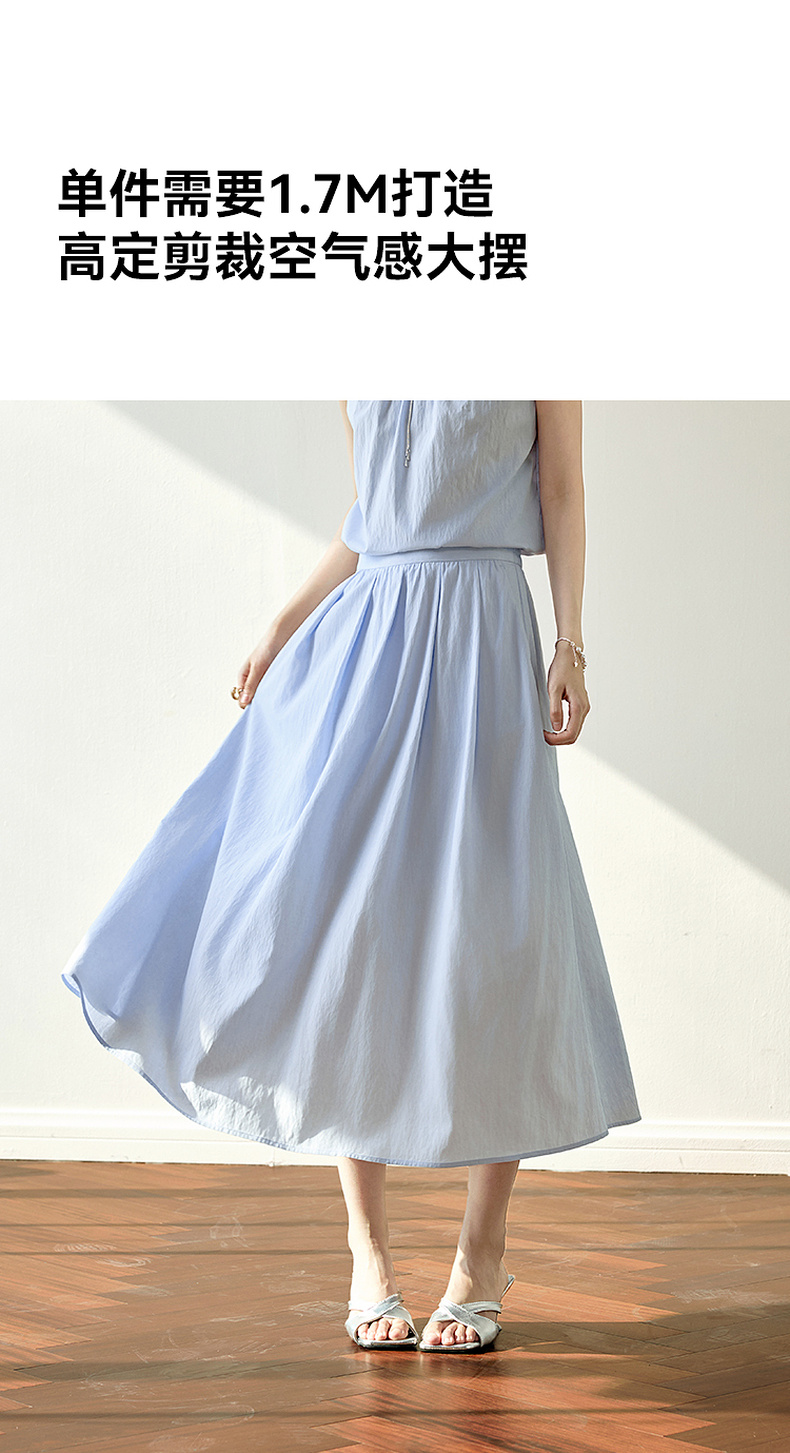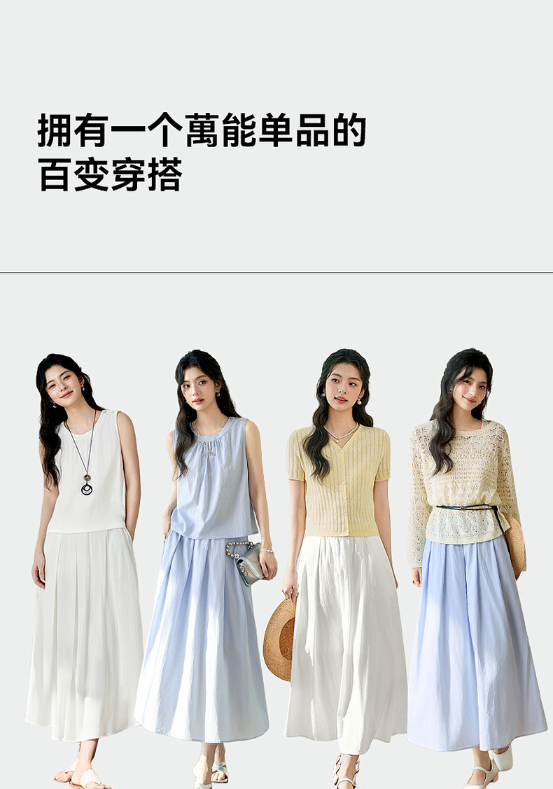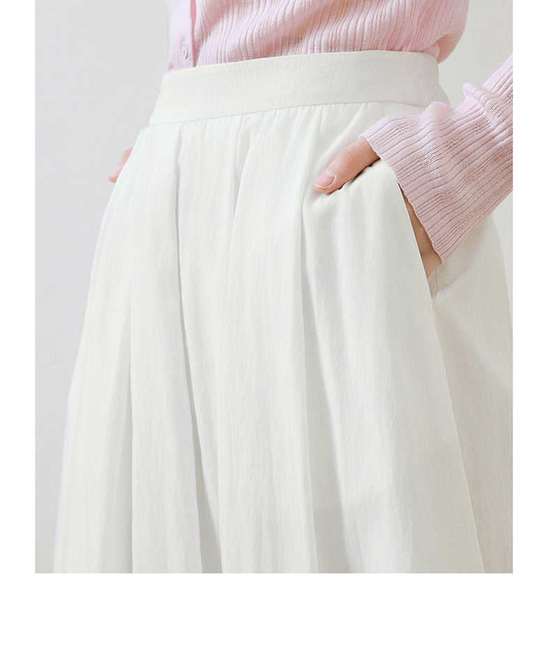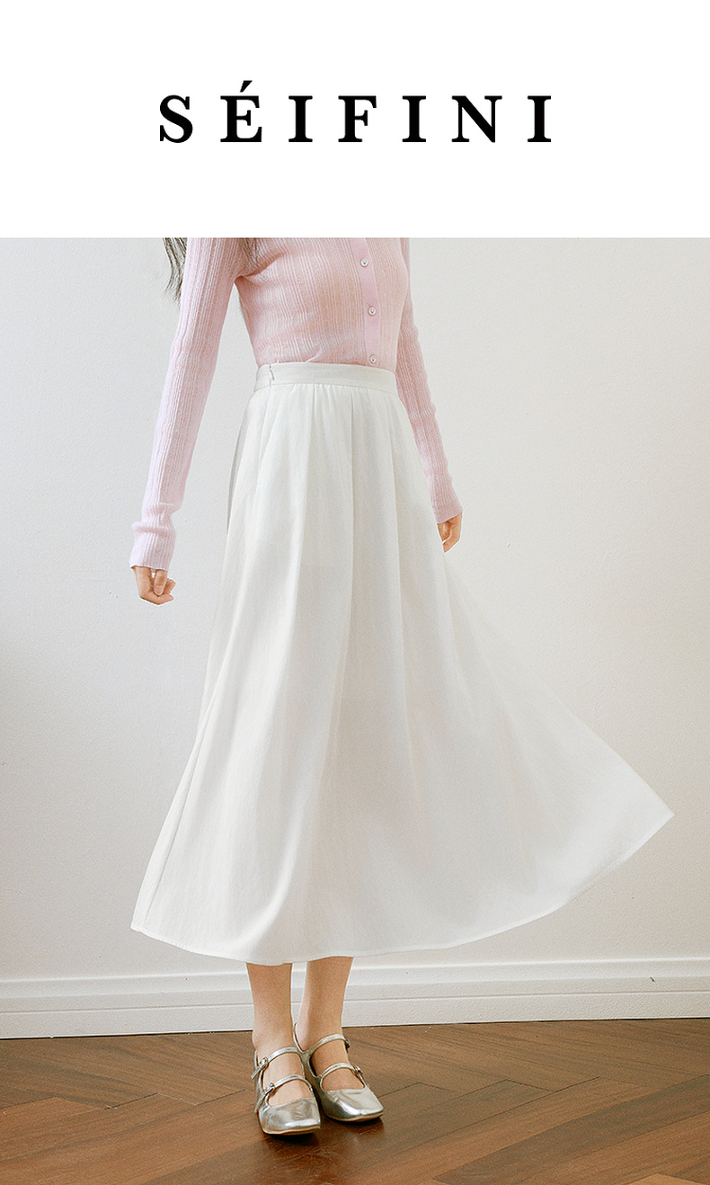 【严选】诗凡黎气质飘逸白色半身裙25夏新款高腰a字显瘦中长小个子百褶裙7G4240161