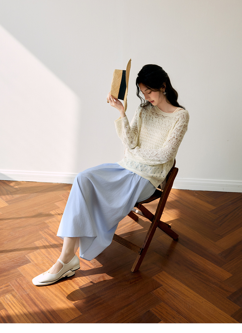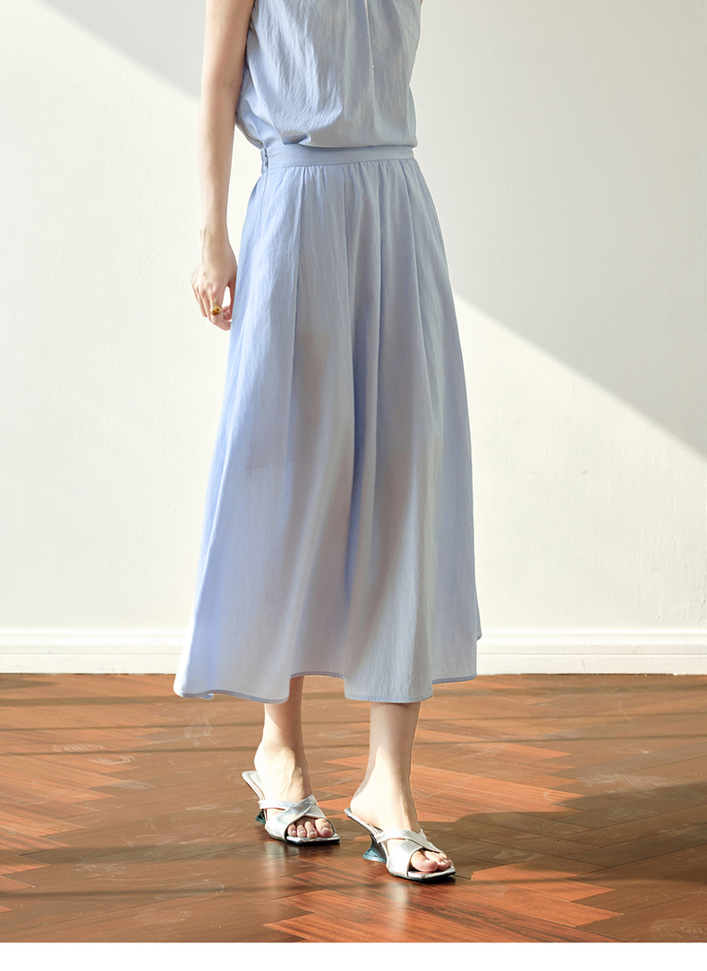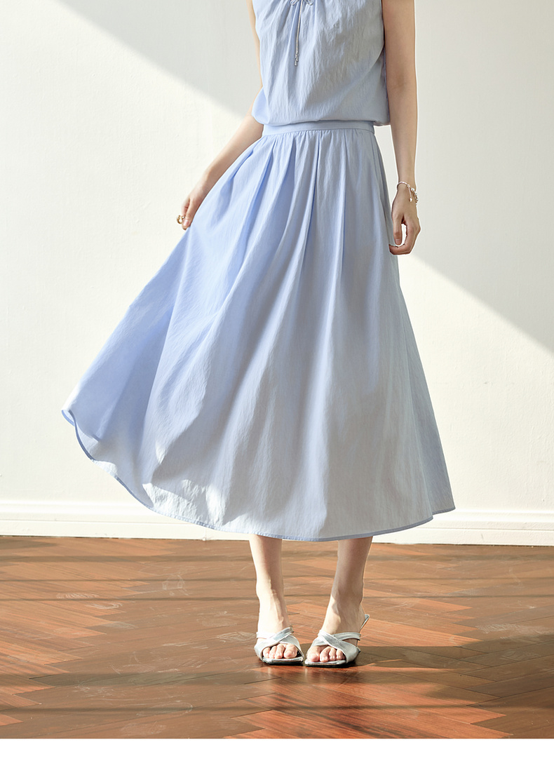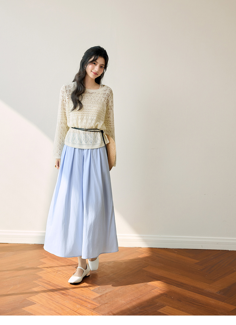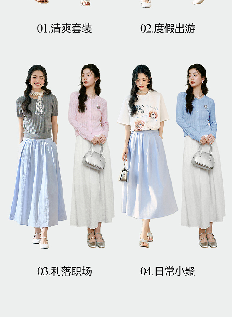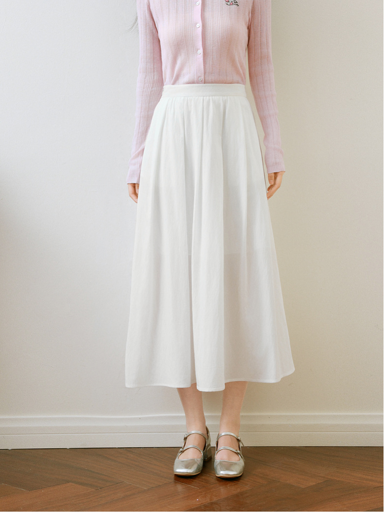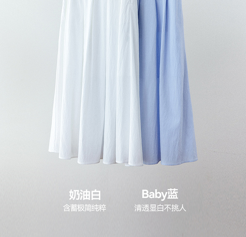 【严选】诗凡黎气质飘逸白色半身裙25夏新款高腰a字显瘦中长小个子百褶裙7G4240161