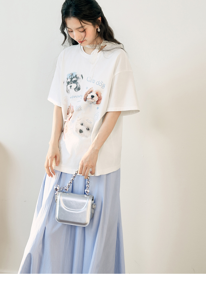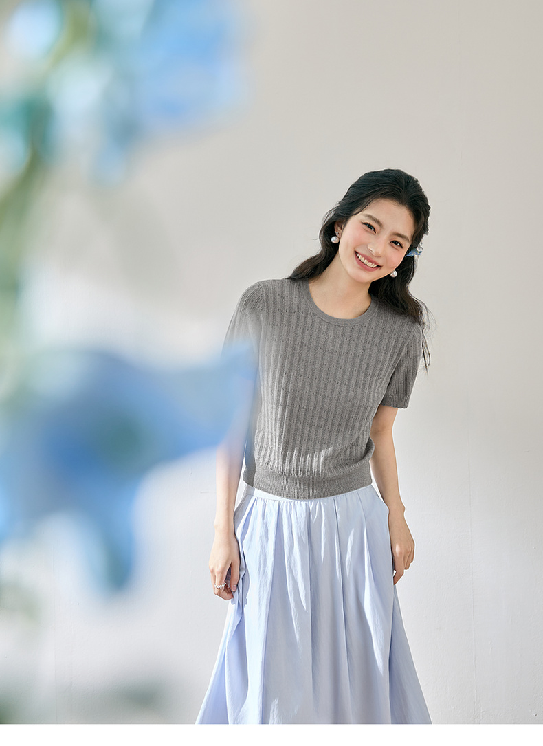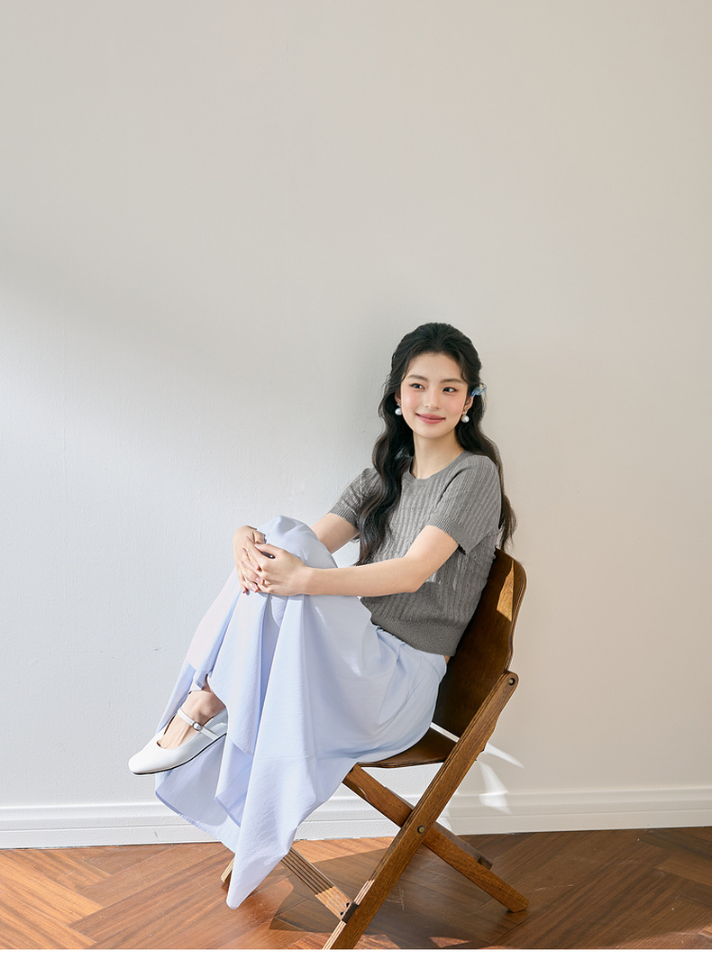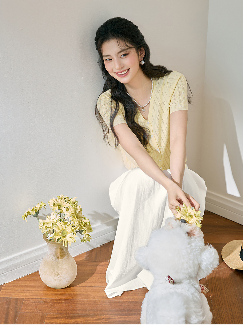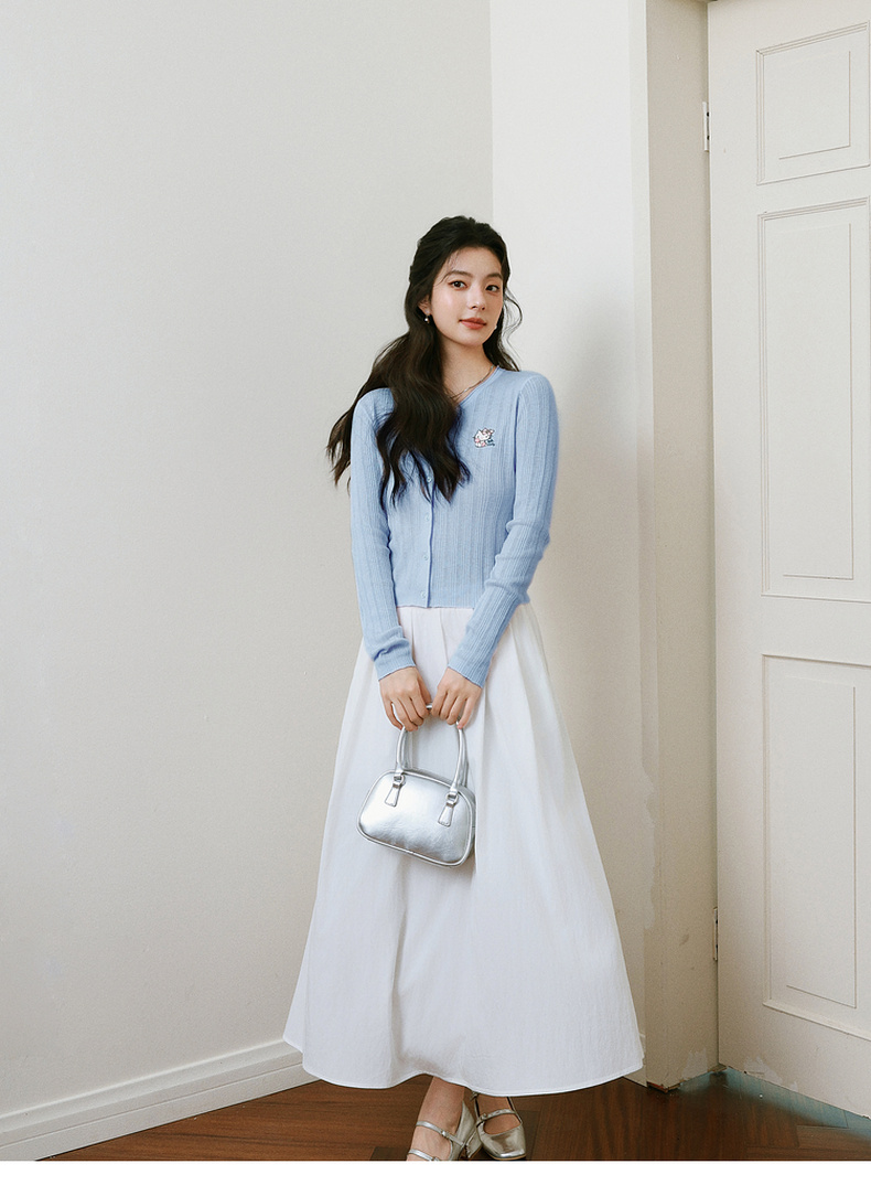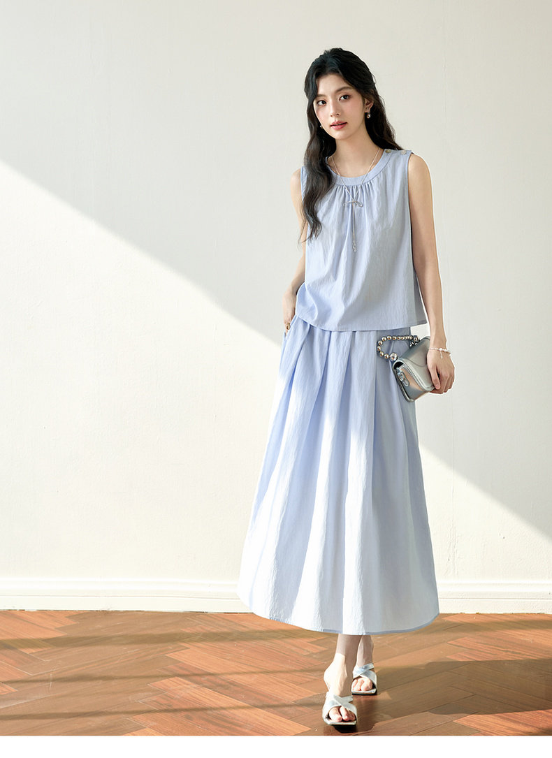 【严选】诗凡黎气质飘逸白色半身裙25夏新款高腰a字显瘦中长小个子百褶裙7G4240161
