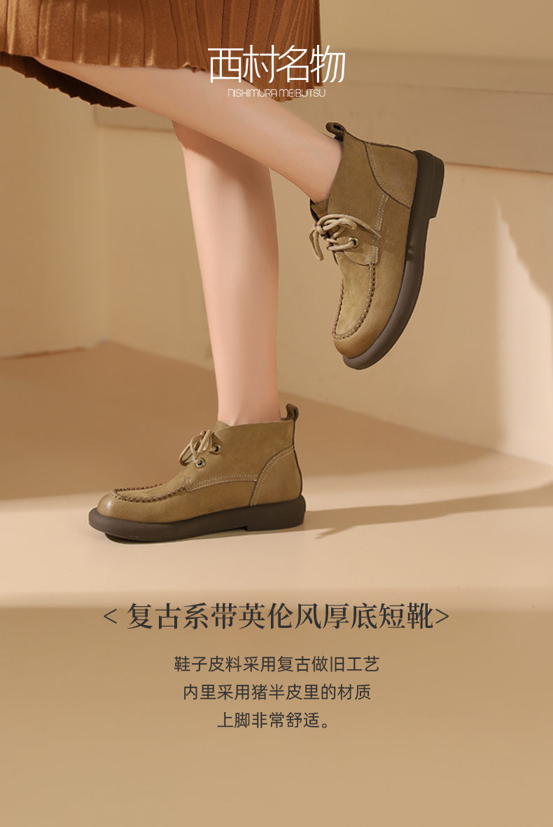 西村名物2023秋冬季新款复古系带英伦风厚底短靴舒适时尚靴X23DS44951