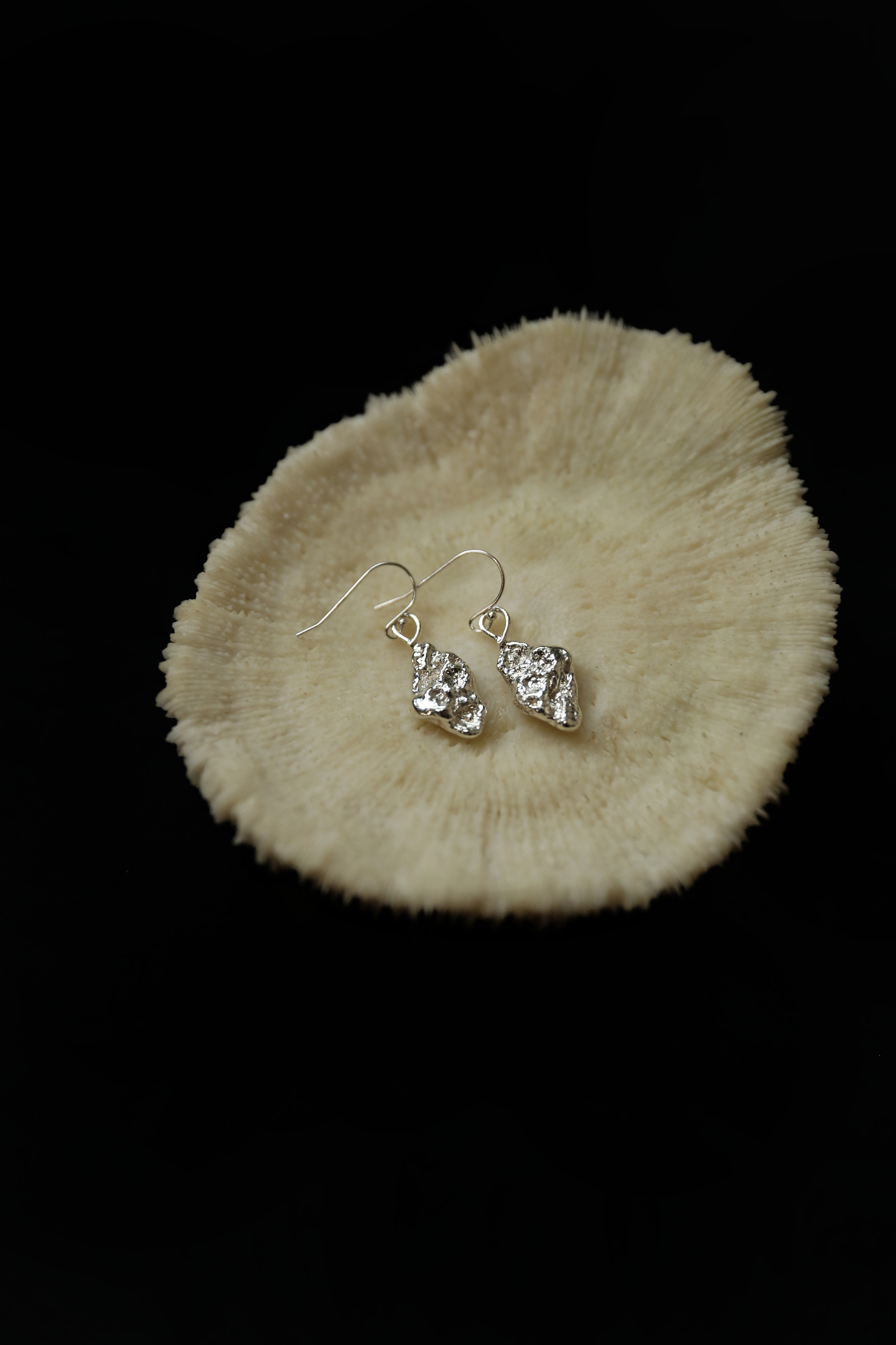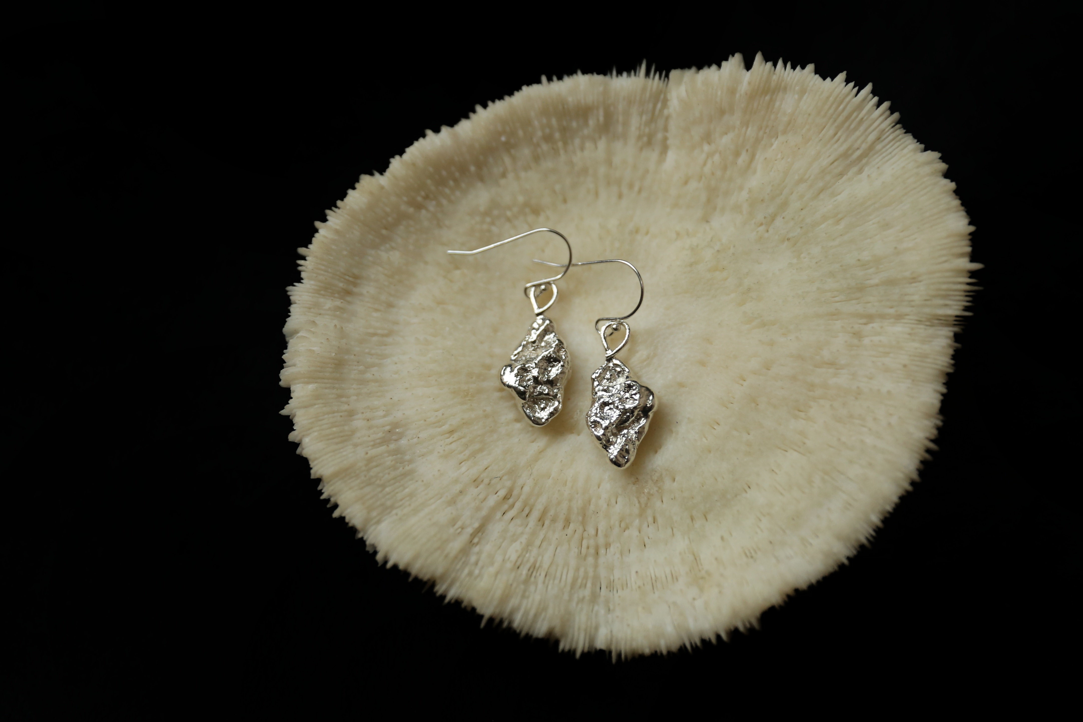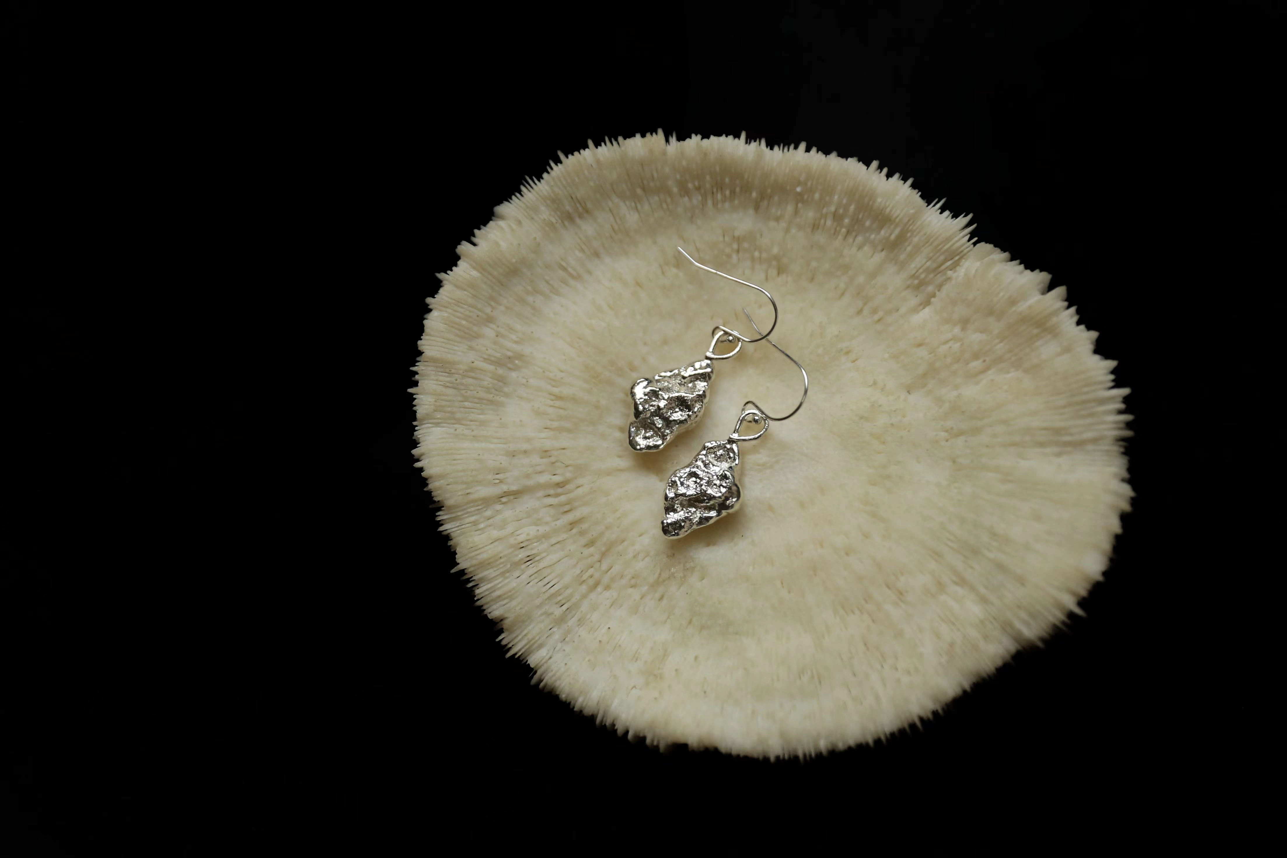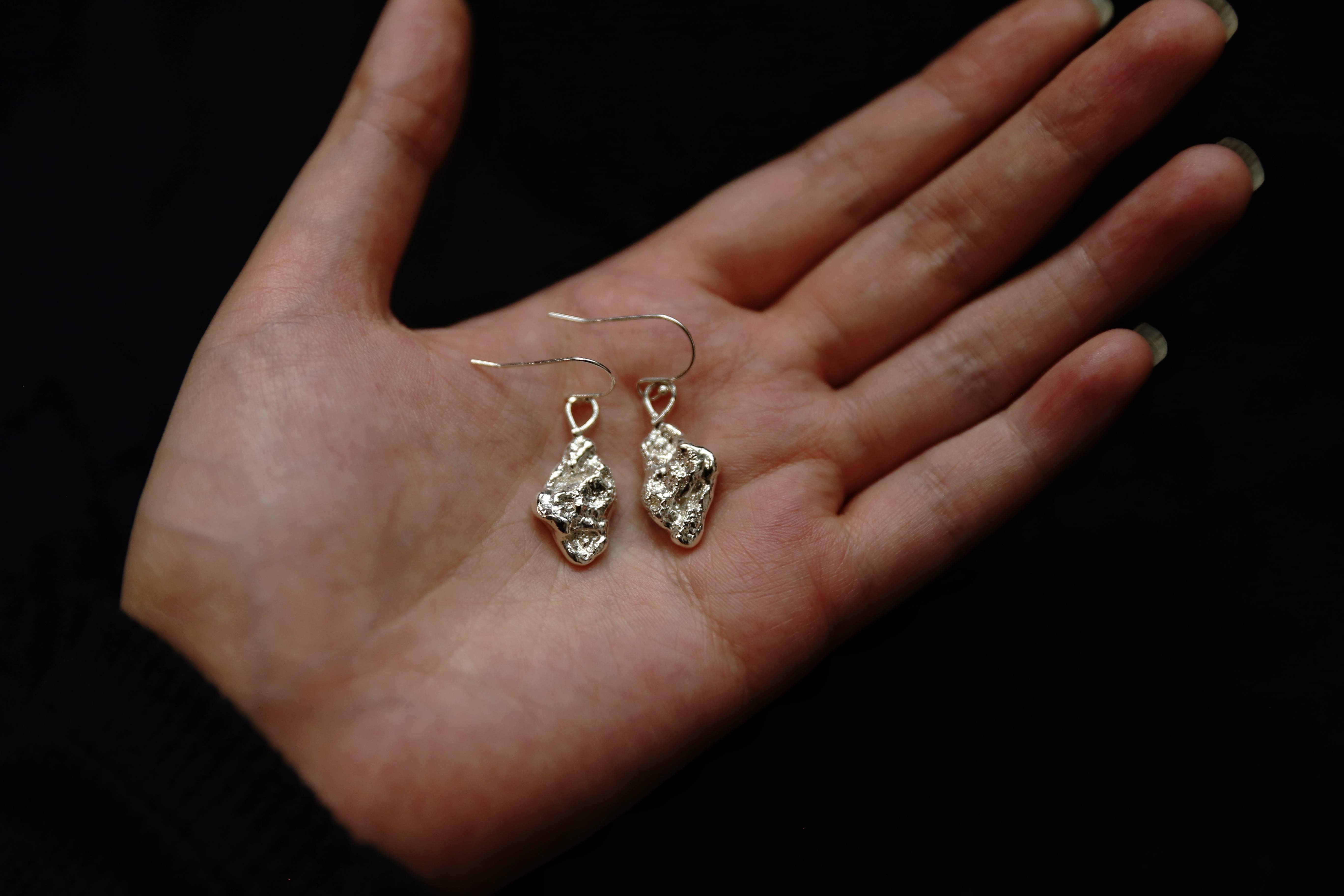 925银手工织物肌理耳坠