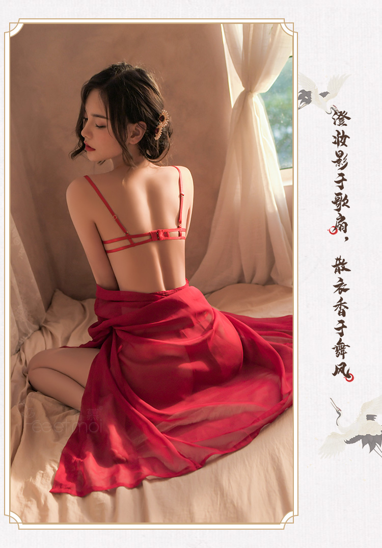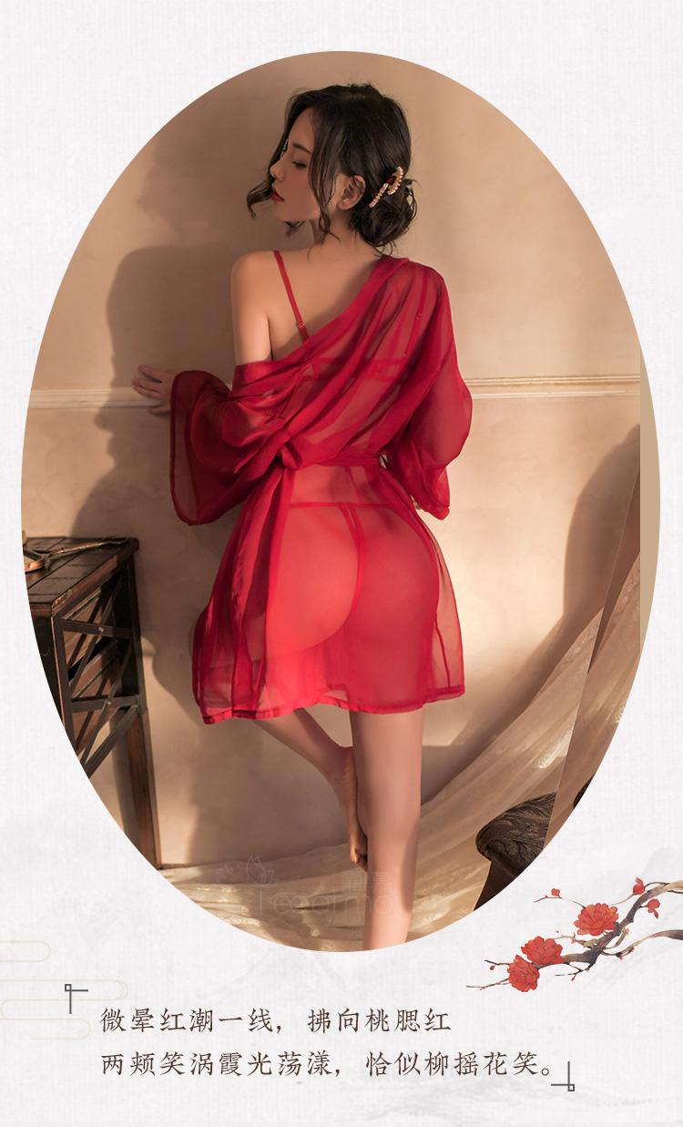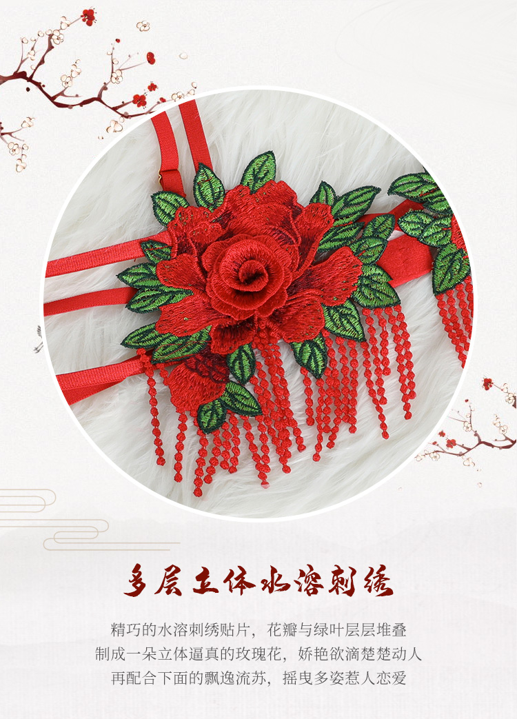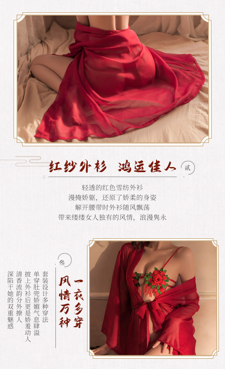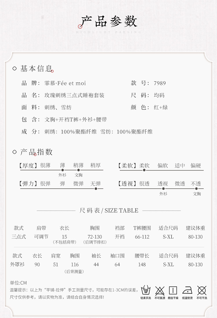 【玫•攻】情趣内衣 诱惑 制服 玫瑰 刺绣 三点式 睡袍 套装 衣服 7989