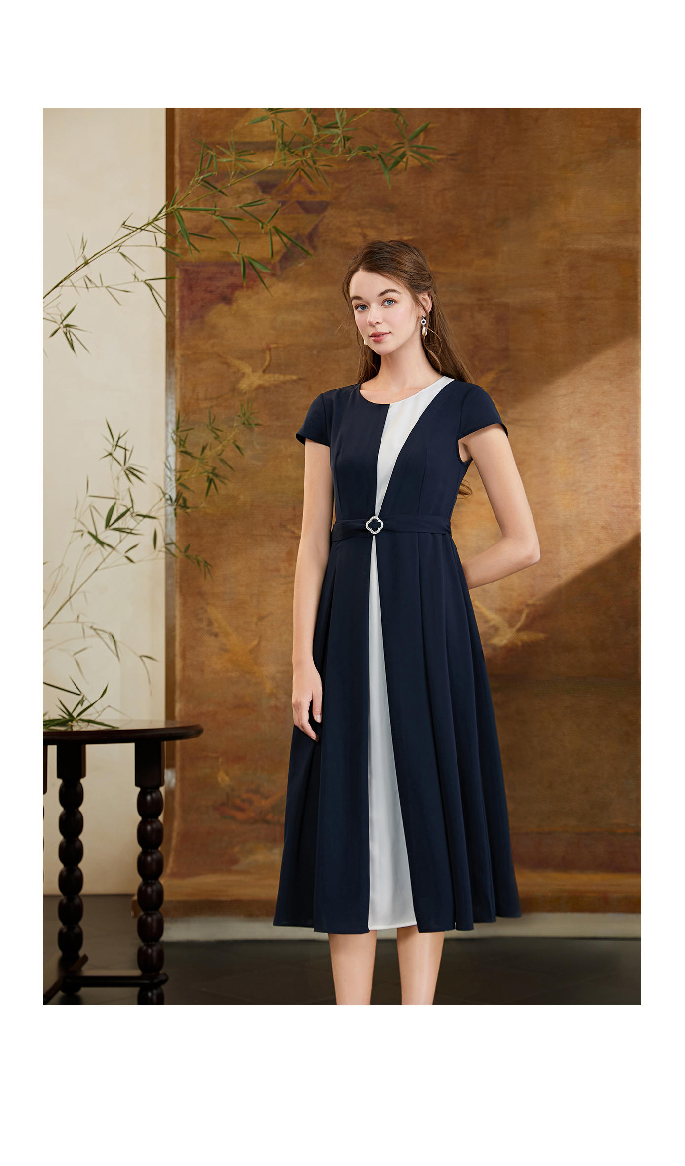 司歌弹力仿牛仔短袖风衣裙连衣裙A911019X