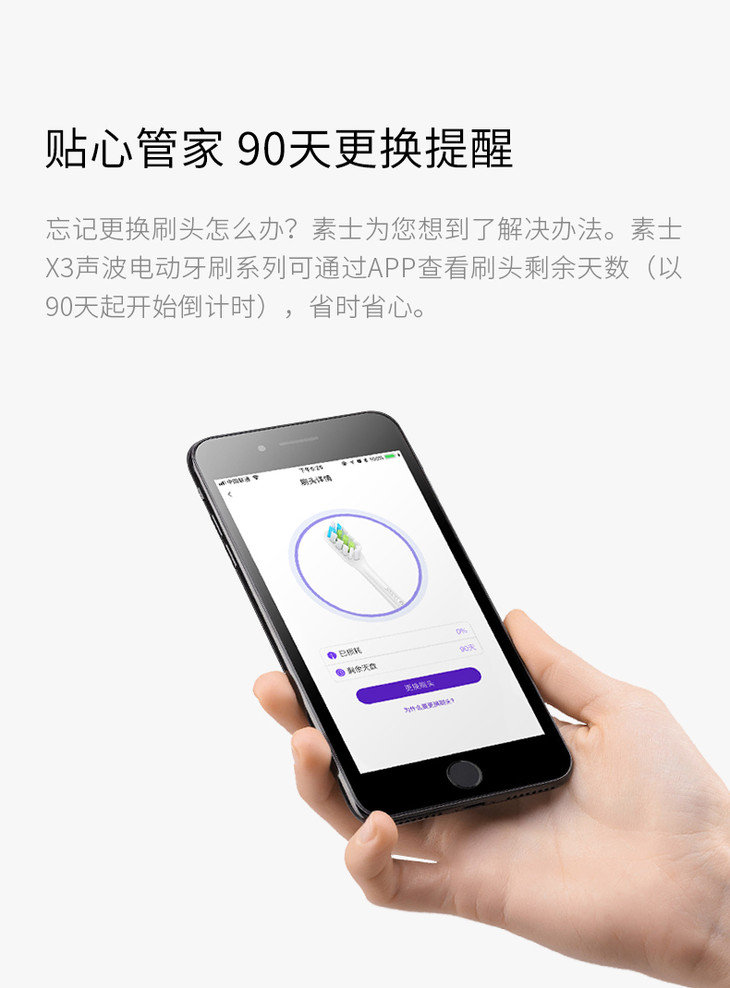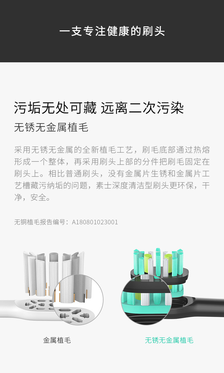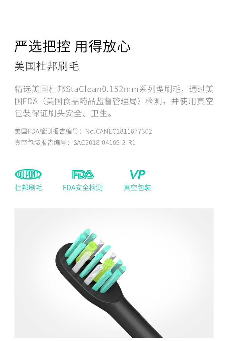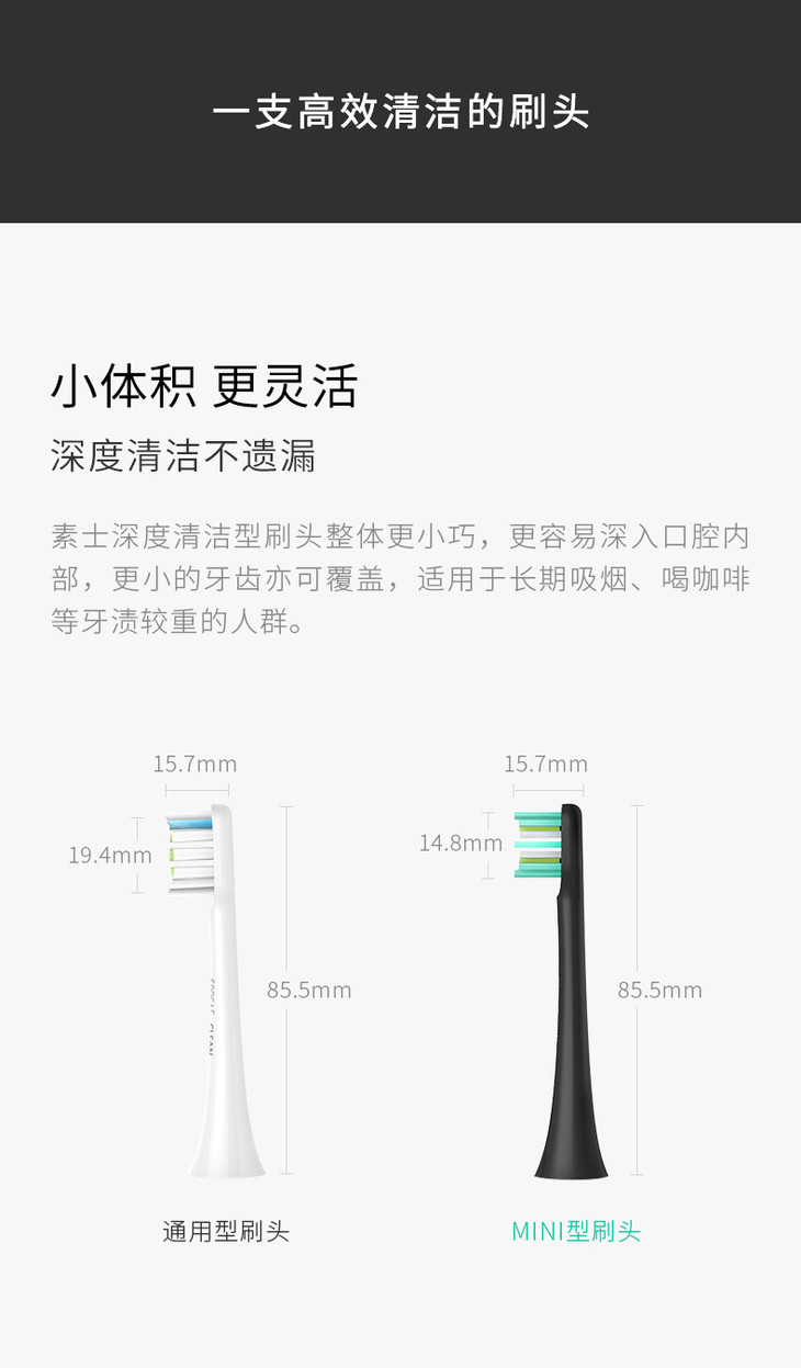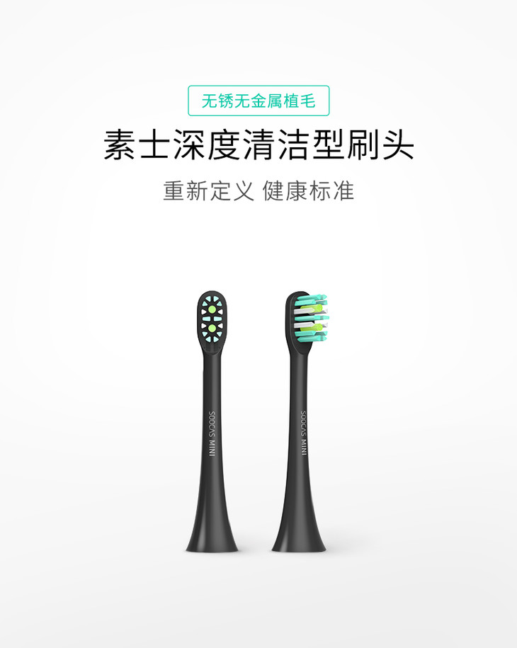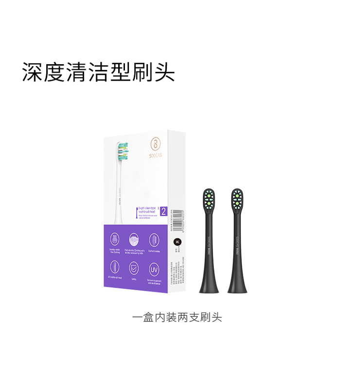 素士X3声波电动牙刷头两支装通用清洁型无铜植毛刷头黑色
